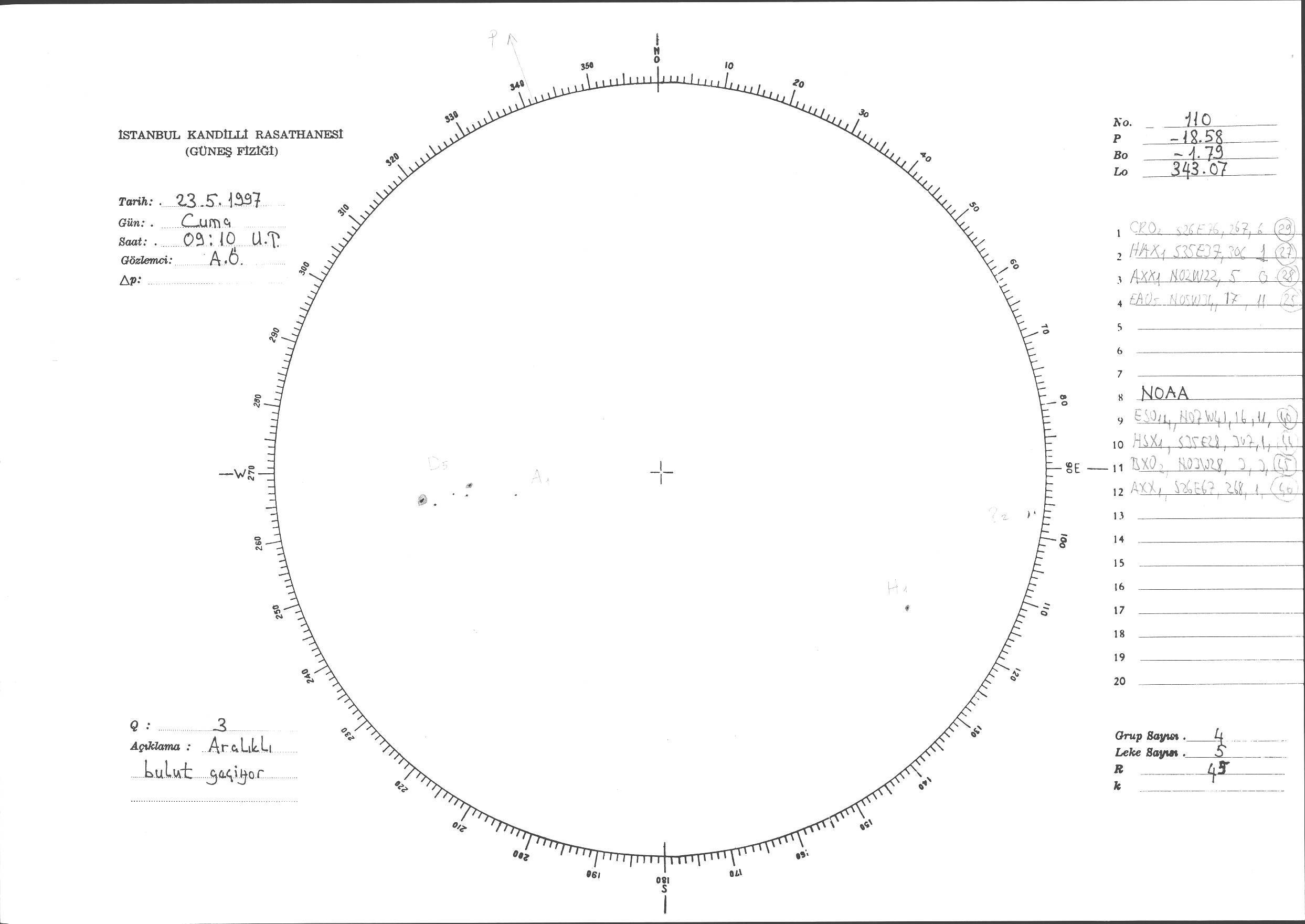 Güneş Lekesi Çizimi - 23.05.1997