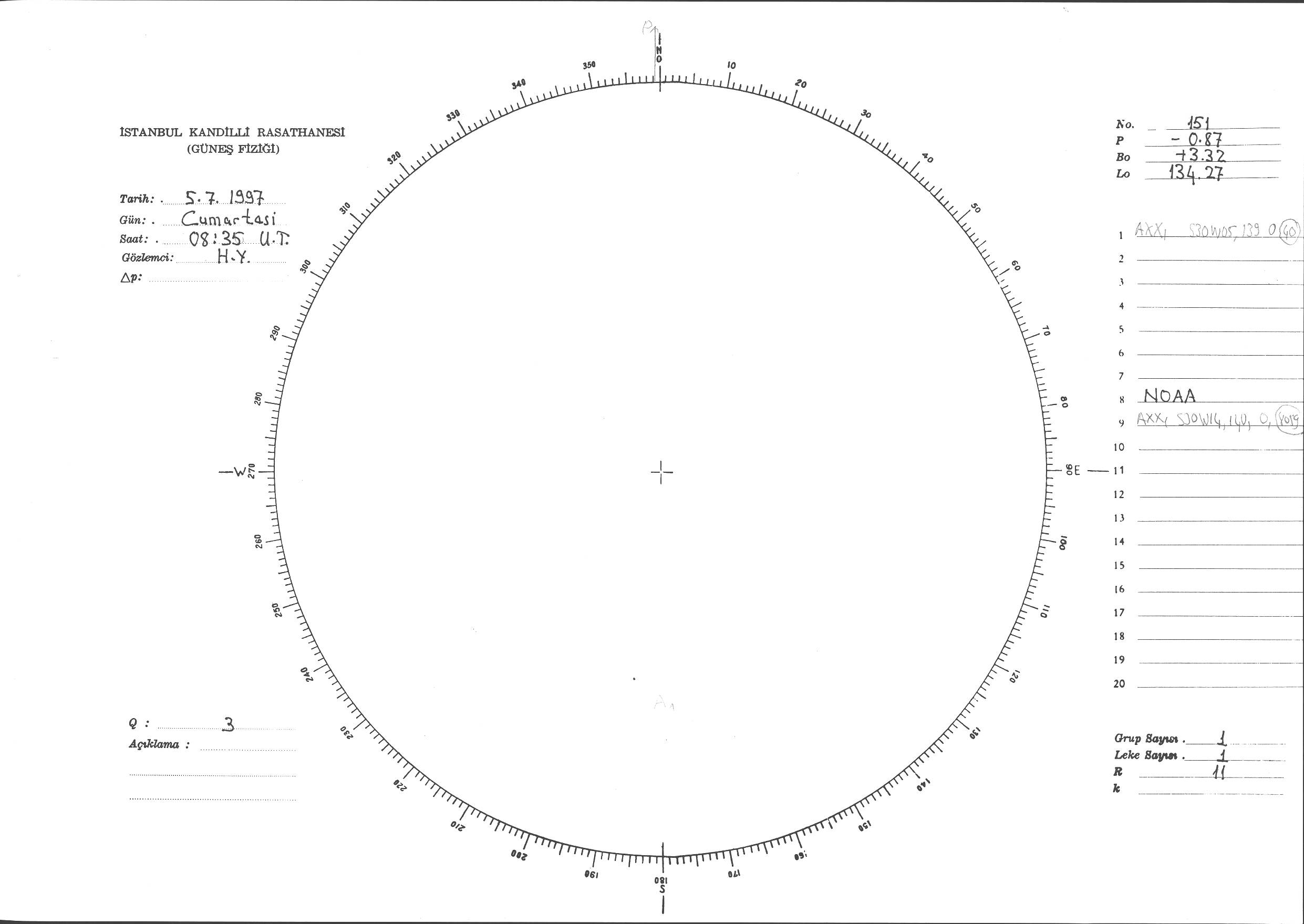 Güneş Lekesi Çizimi - 05.07.1997