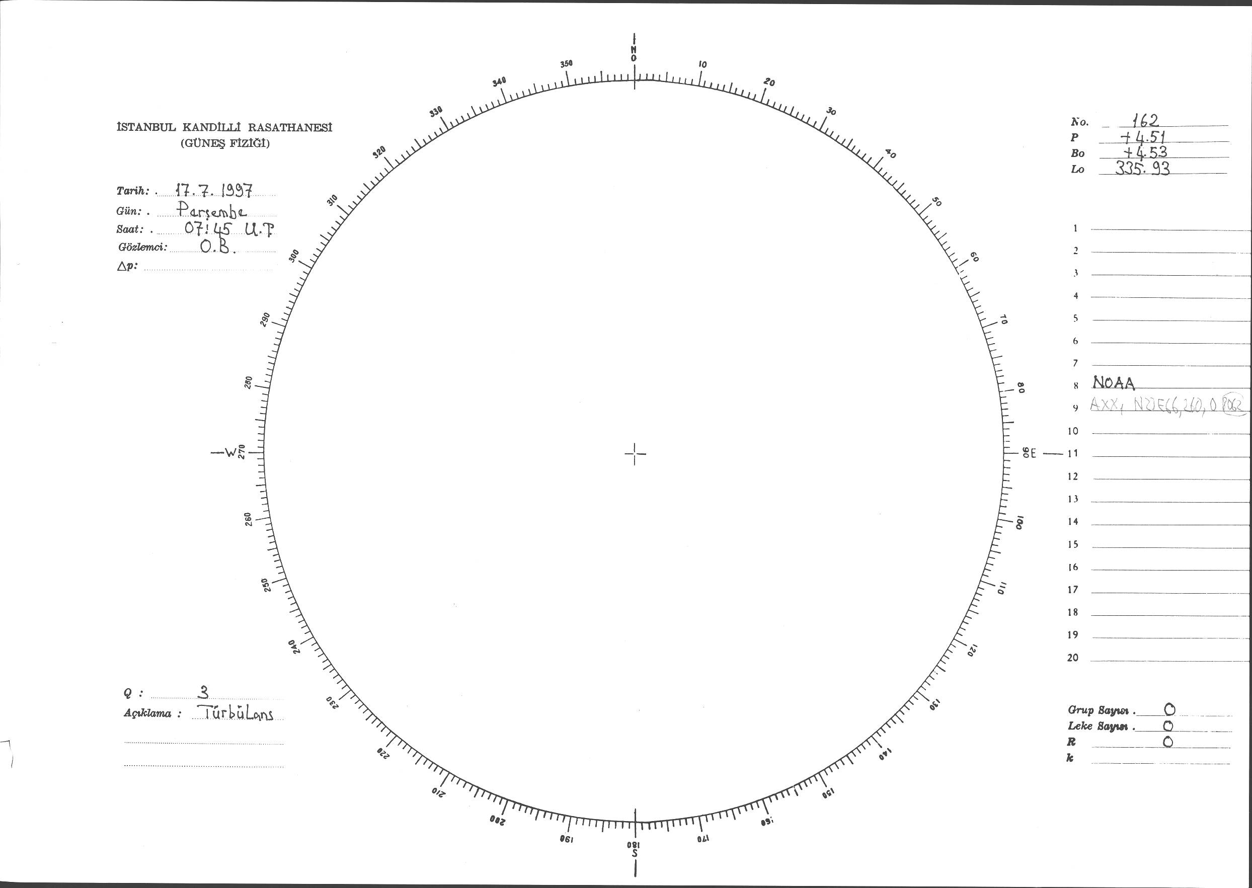 Güneş Lekesi Çizimi - 17.07.1997