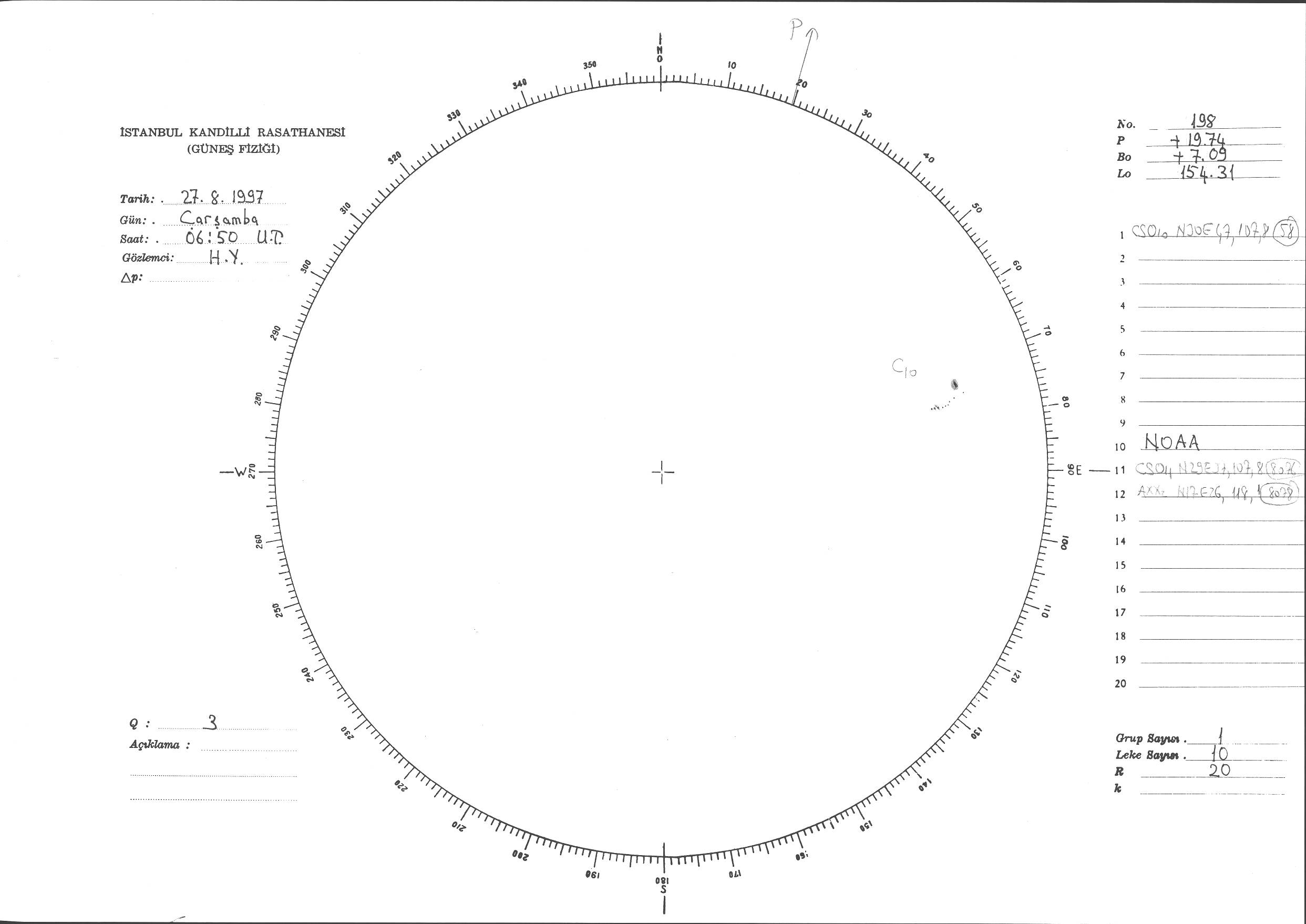 Güneş Lekesi Çizimi - 27.08.1997