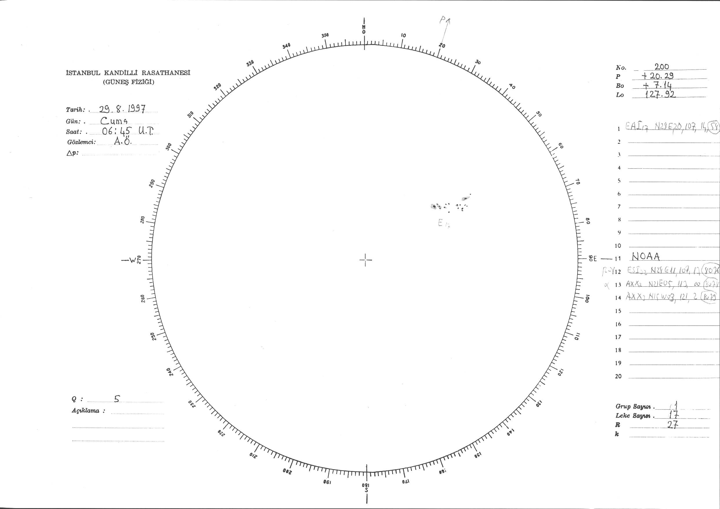 Güneş Lekesi Çizimi - 29.08.1997