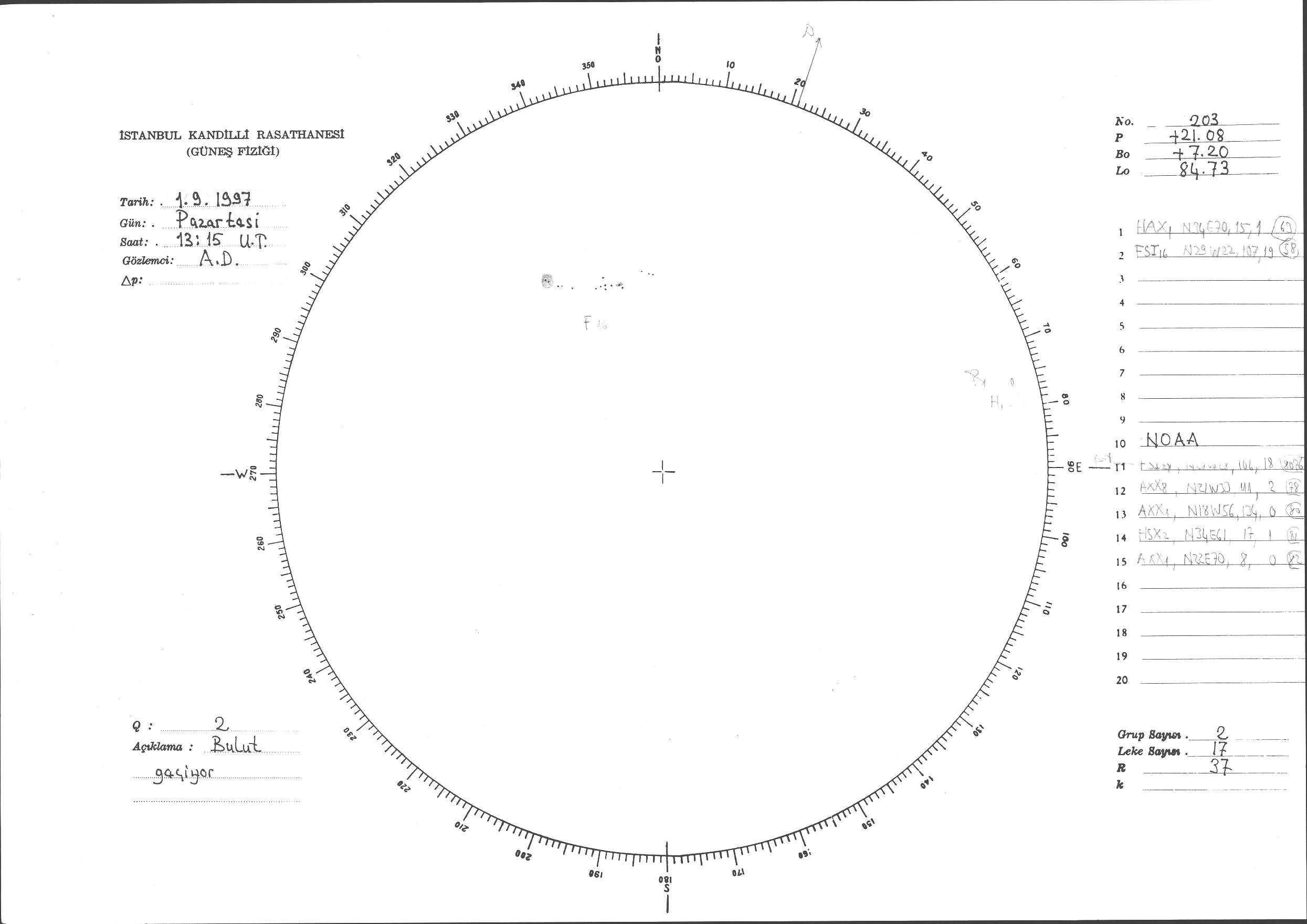 Güneş Lekesi Çizimi - 01.09.1997