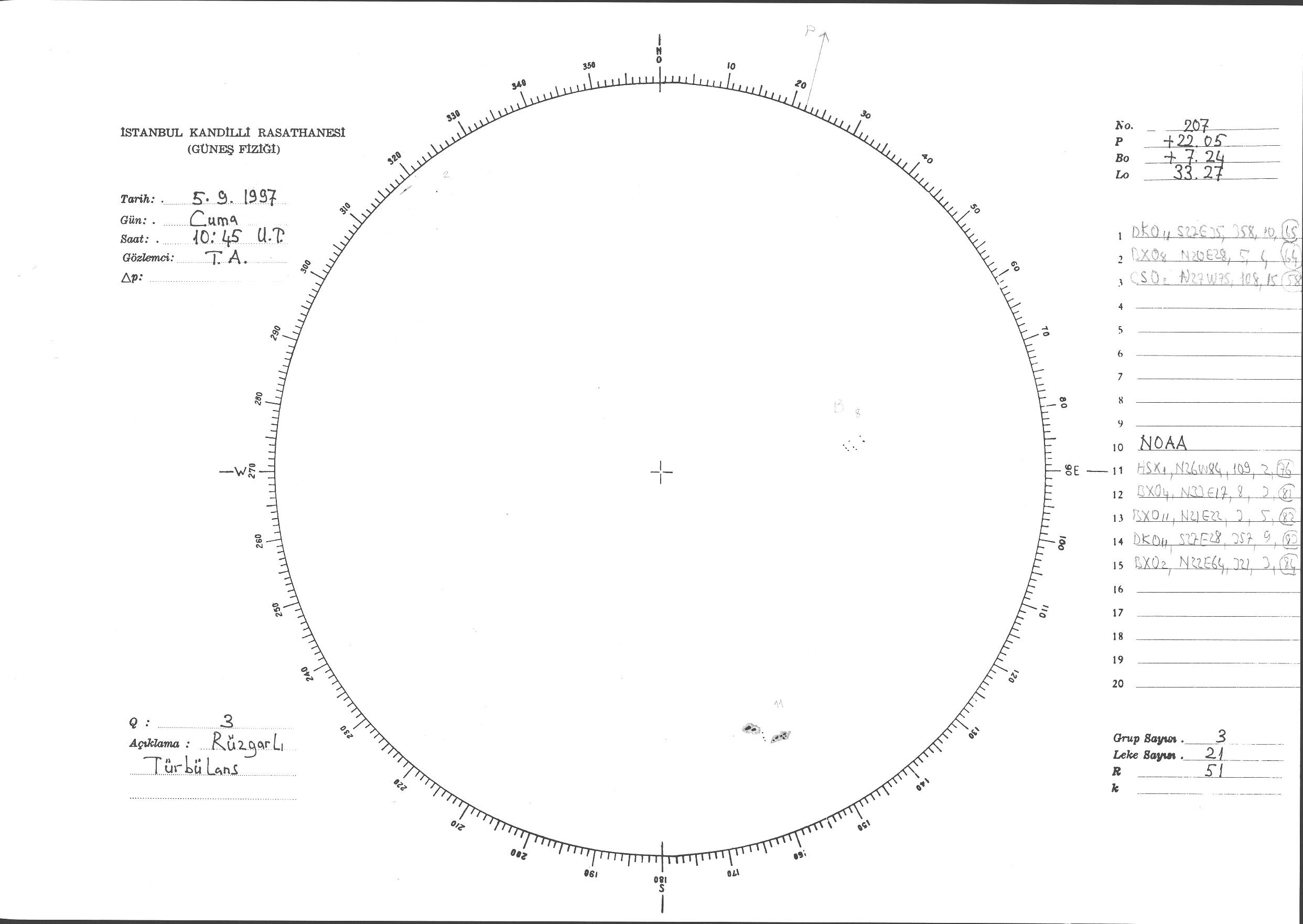 Güneş Lekesi Çizimi - 05.09.1997