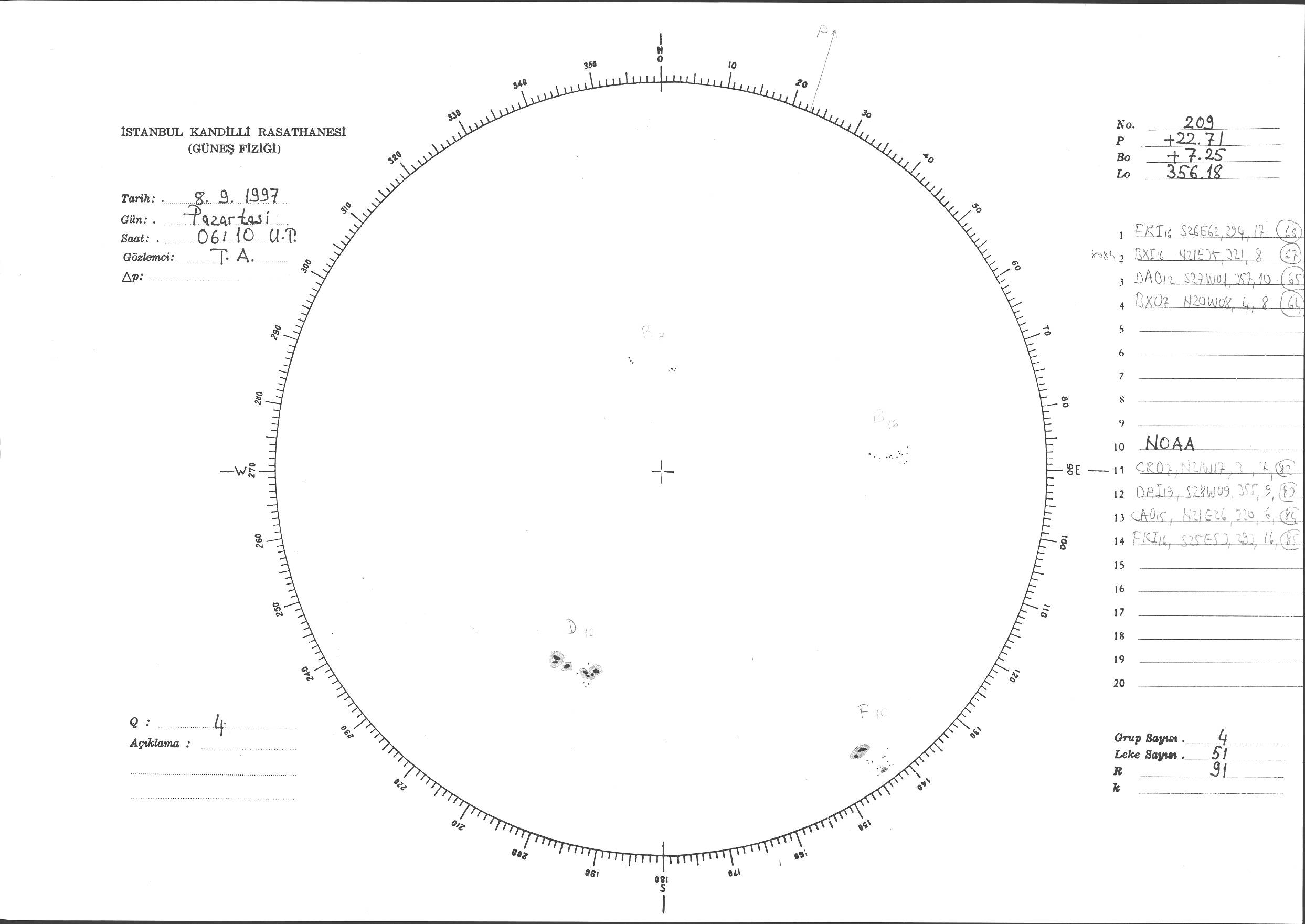 Güneş Lekesi Çizimi - 08.09.1997
