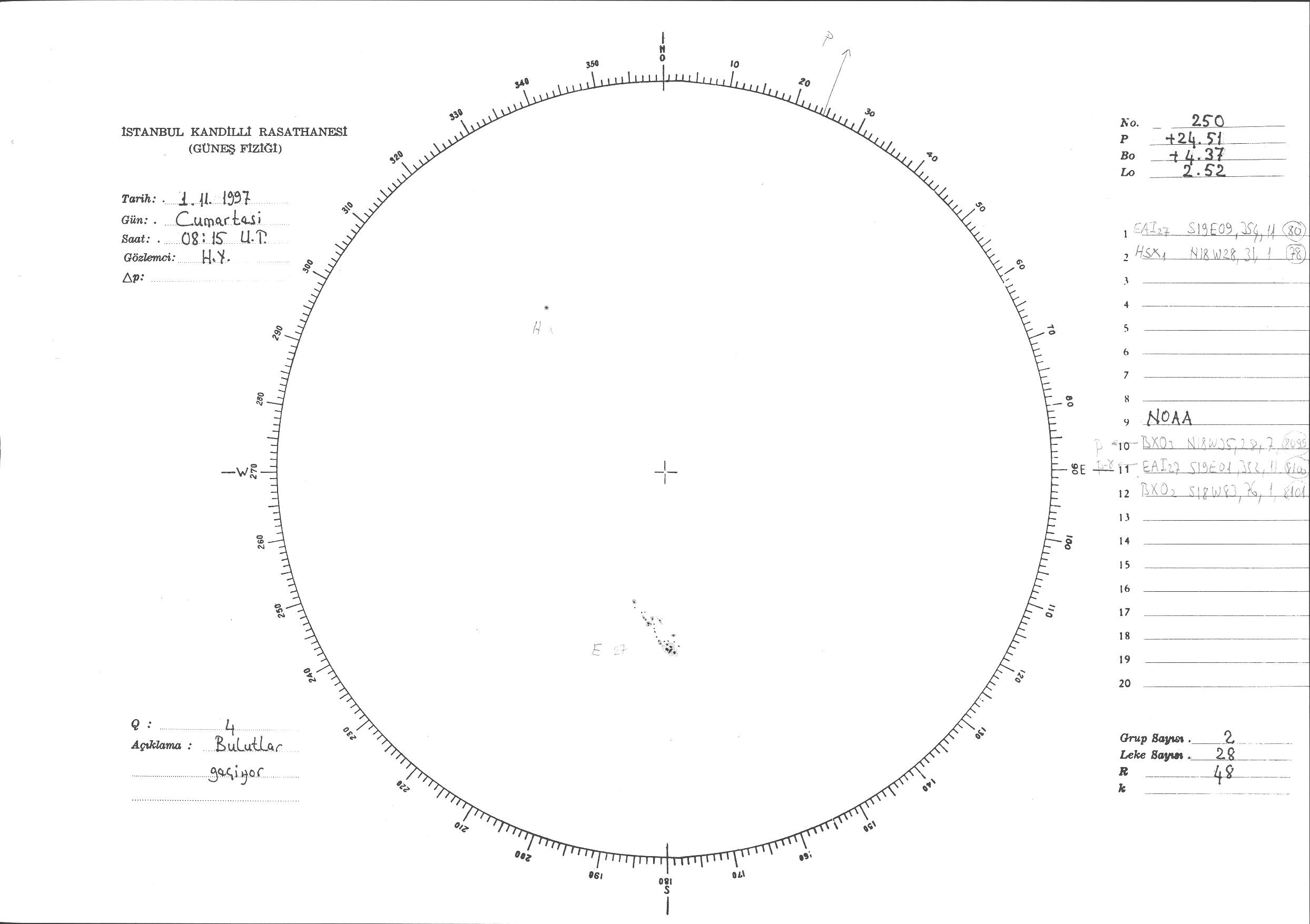 Güneş Lekesi Çizimi - 01.11.1997