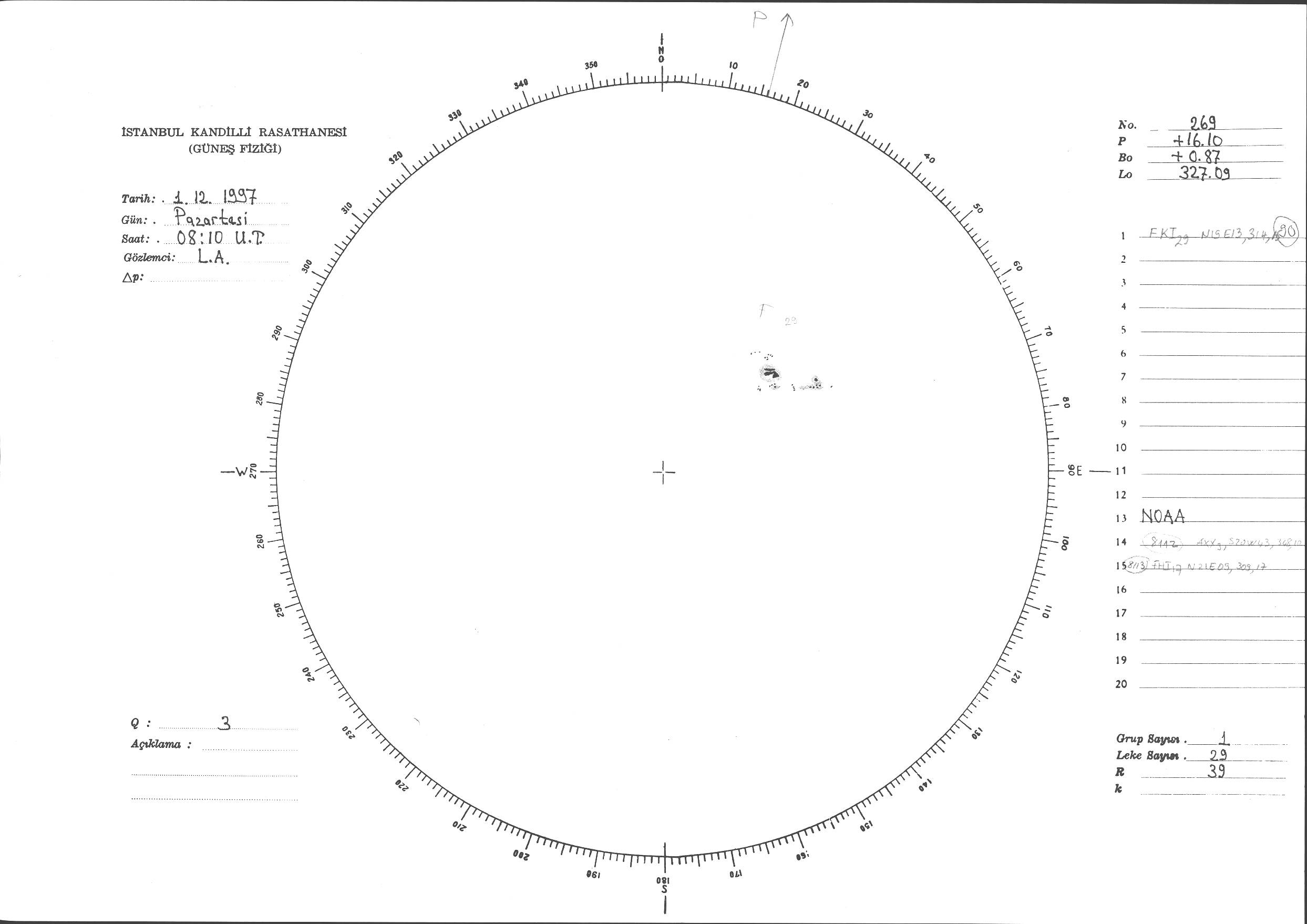 Güneş Lekesi Çizimi - 01.12.1997
