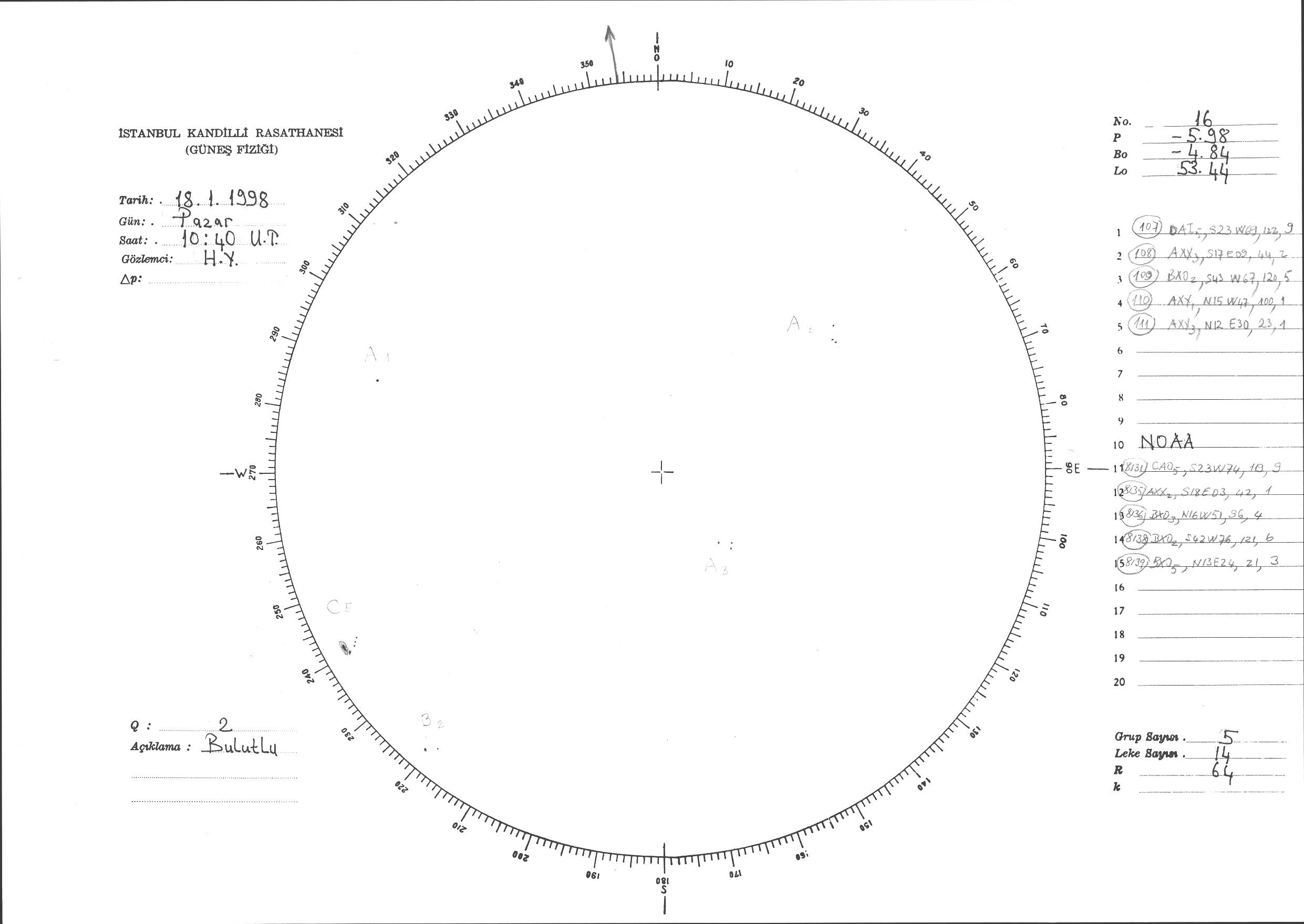 Güneş Lekesi Çizimi - 18.01.1998