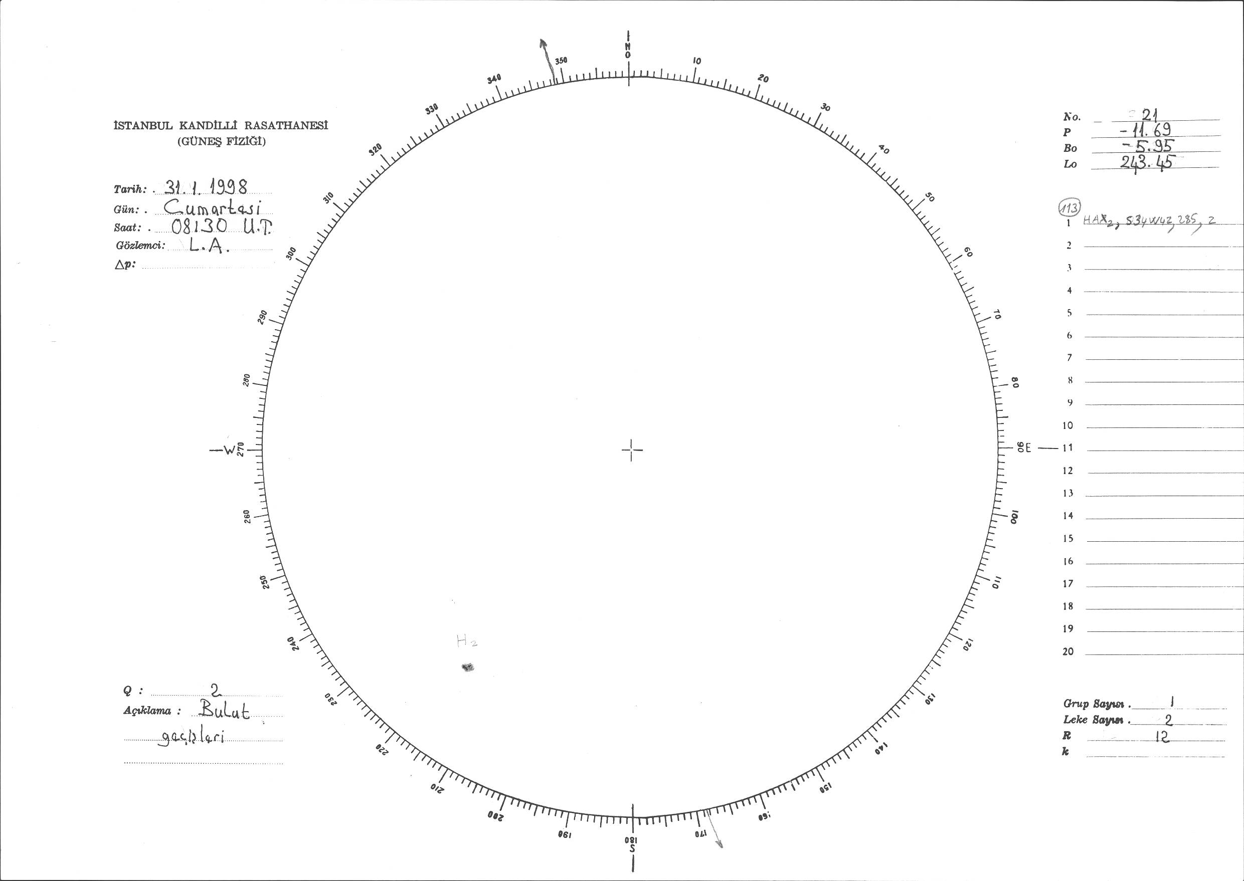 Güneş Lekesi Çizimi - 31.01.1998