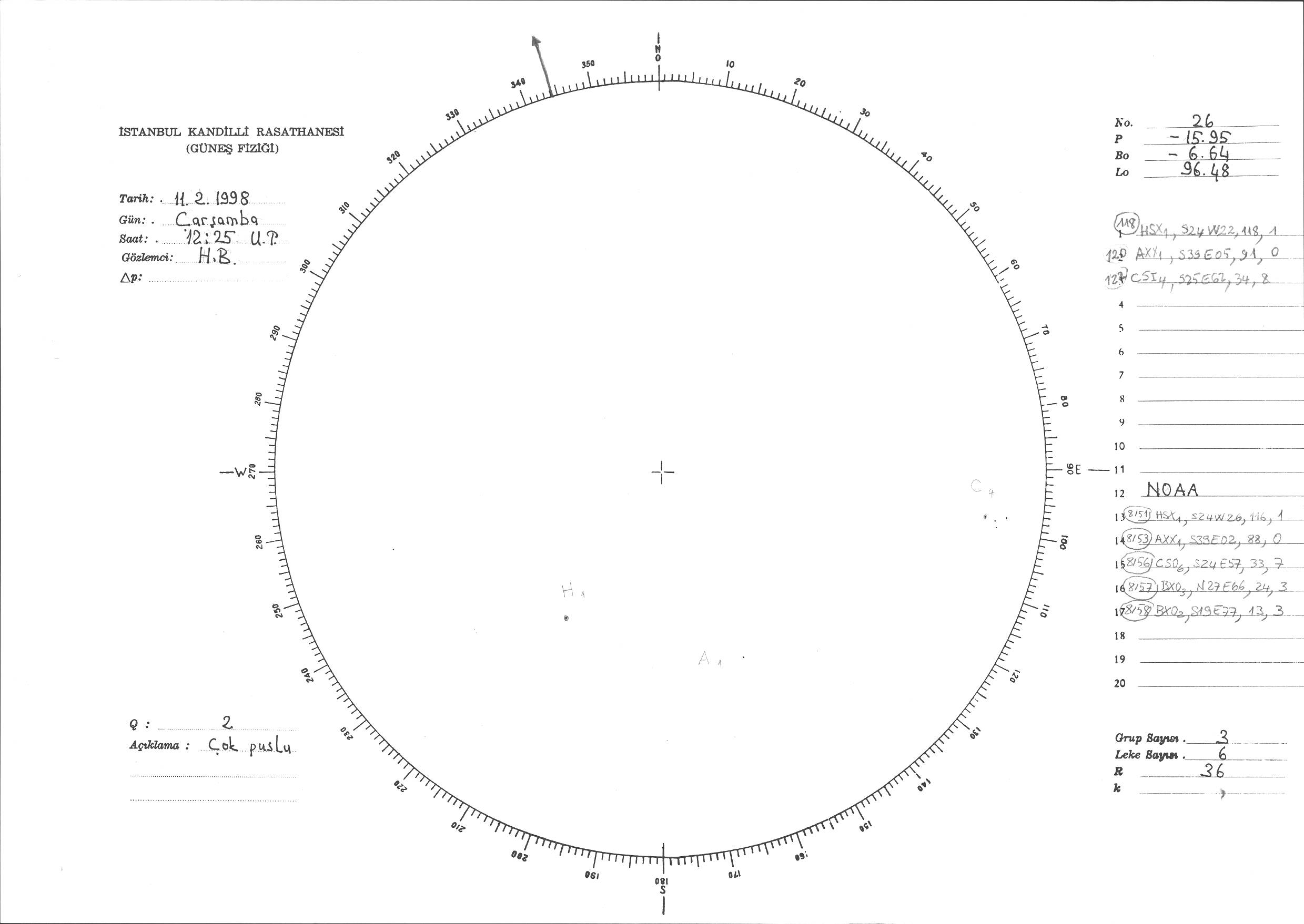 Güneş Lekesi Çizimi - 11.02.1998