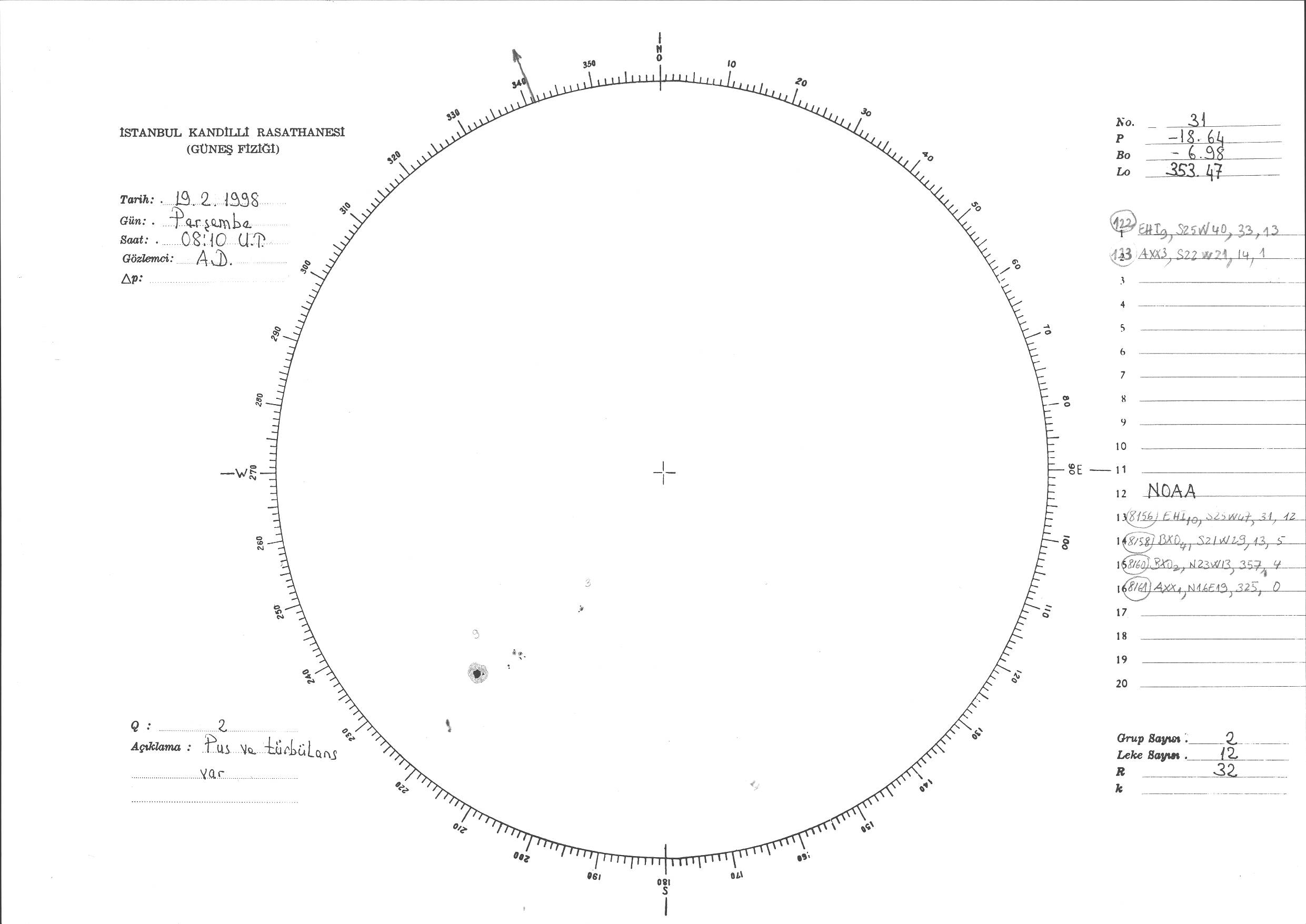 Güneş Lekesi Çizimi - 19.02.1998