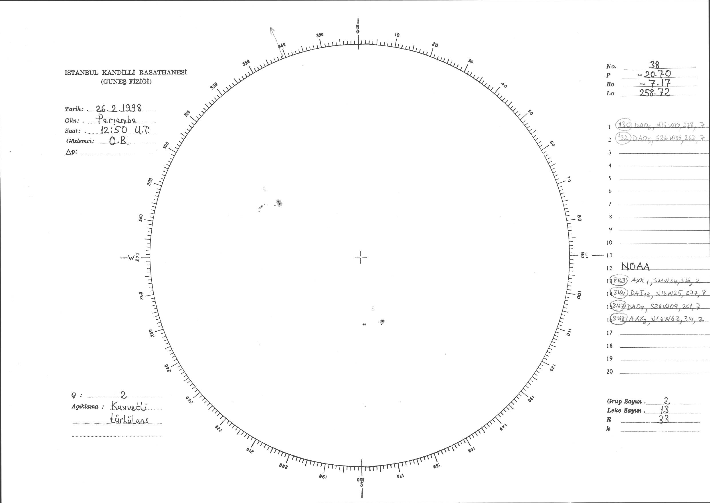 Güneş Lekesi Çizimi - 26.02.1998