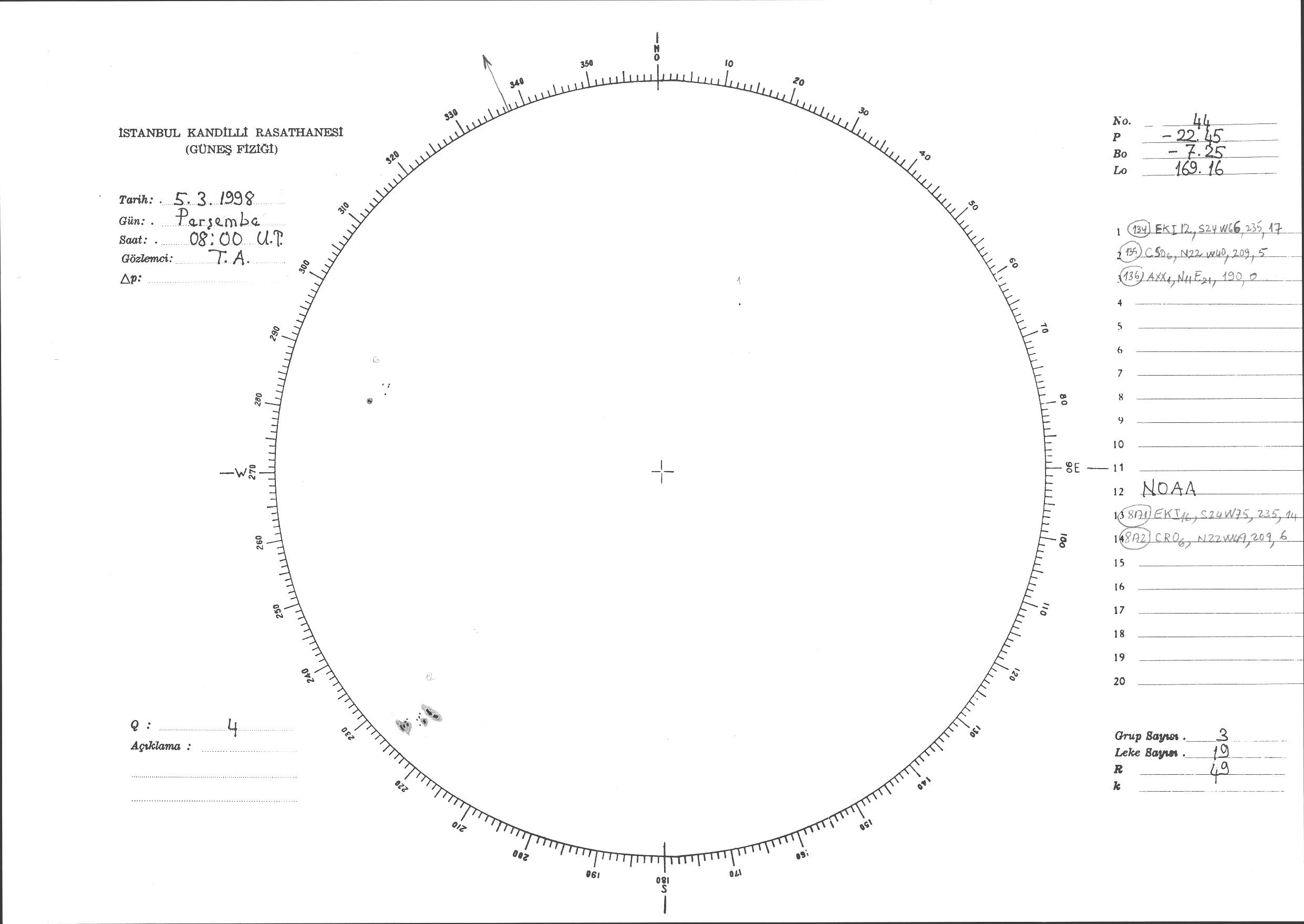 Güneş Lekesi Çizimi - 05.03.1998