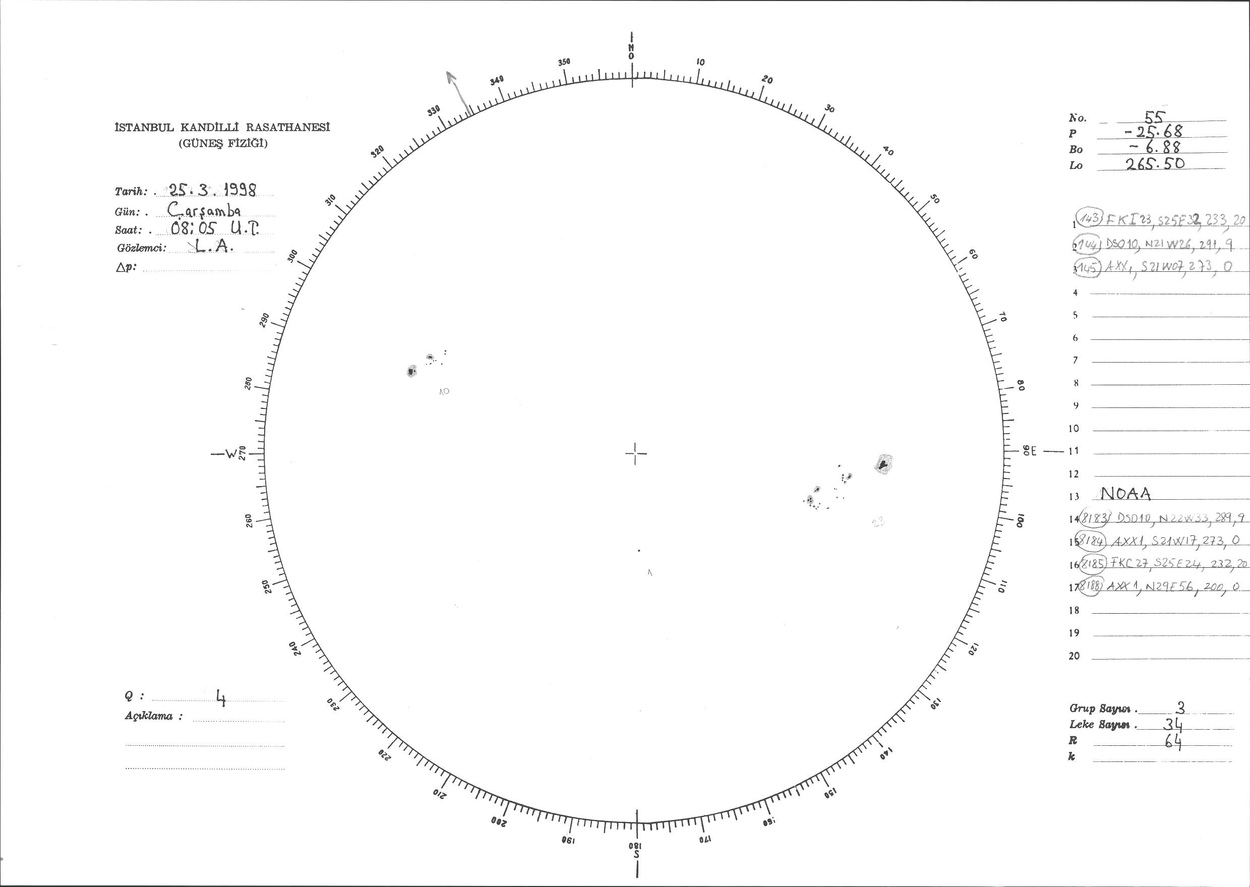 Güneş Lekesi Çizimi - 25.03.1998