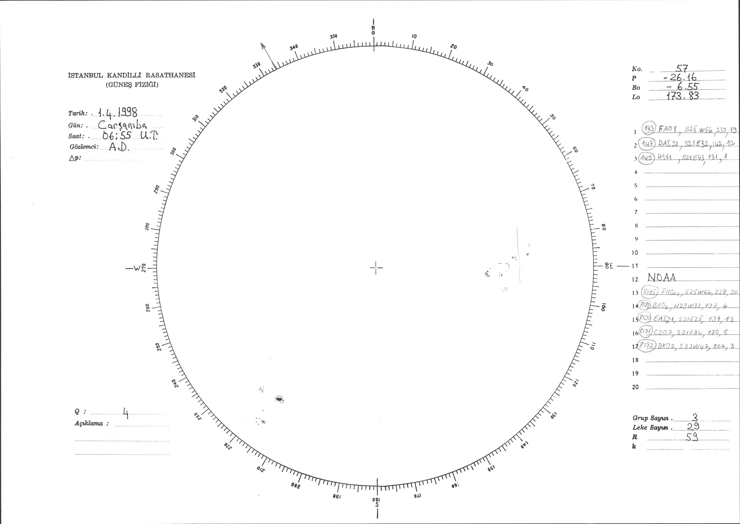 Güneş Lekesi Çizimi - 01.04.1998