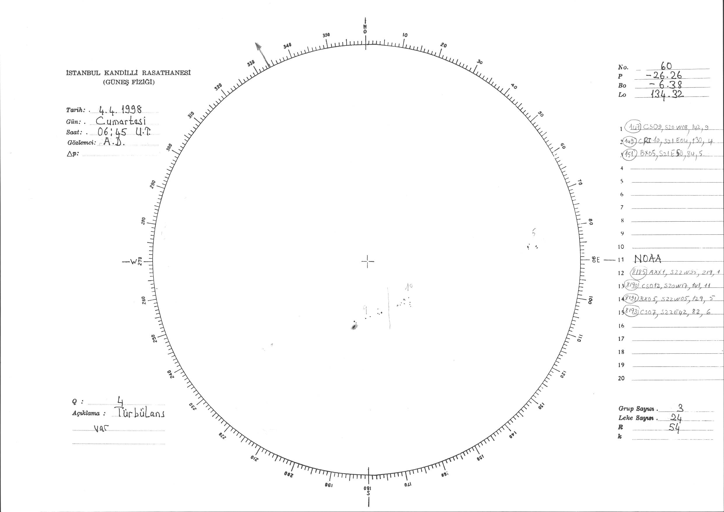 Güneş Lekesi Çizimi - 04.04.1998