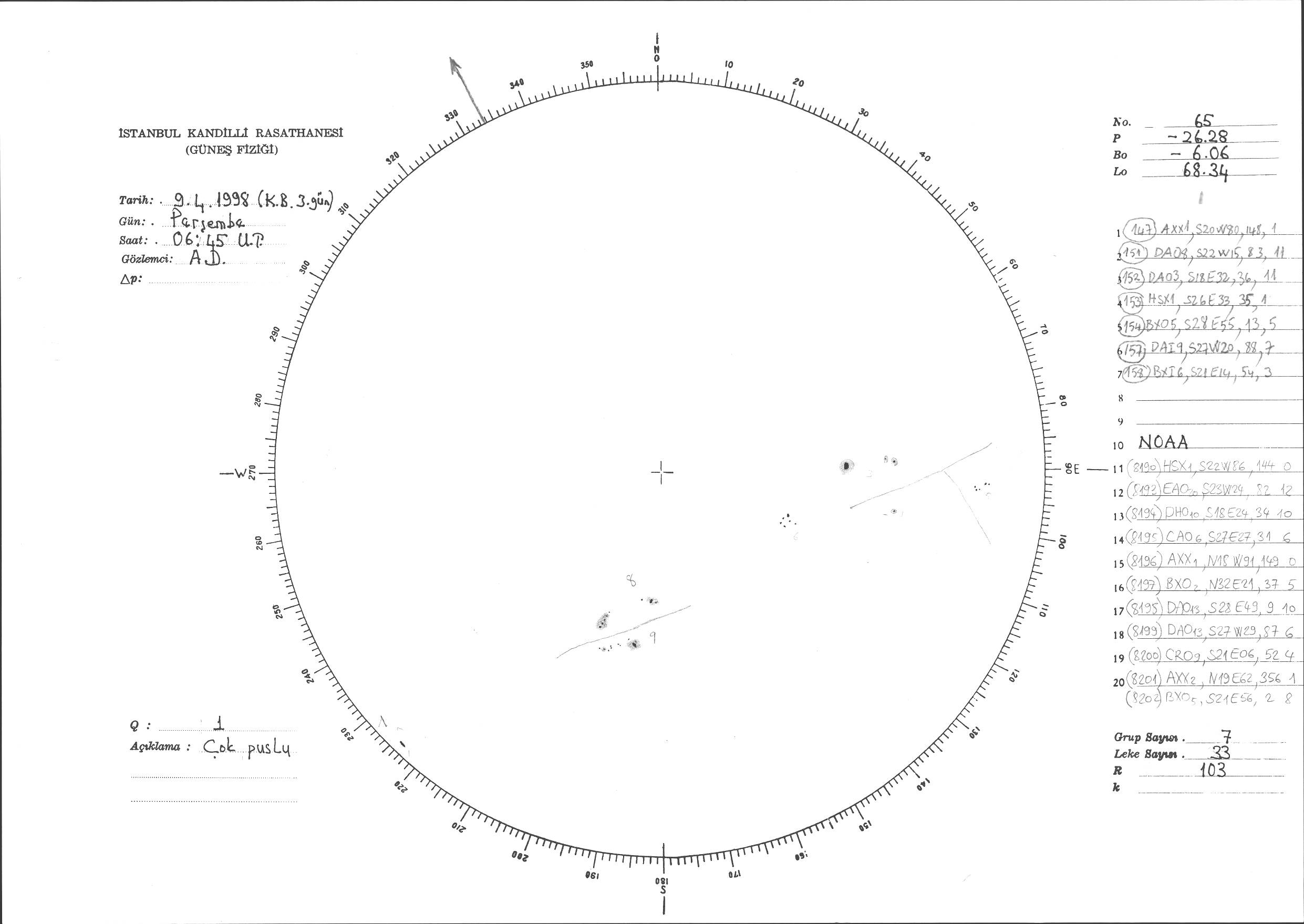 Güneş Lekesi Çizimi - 09.04.1998