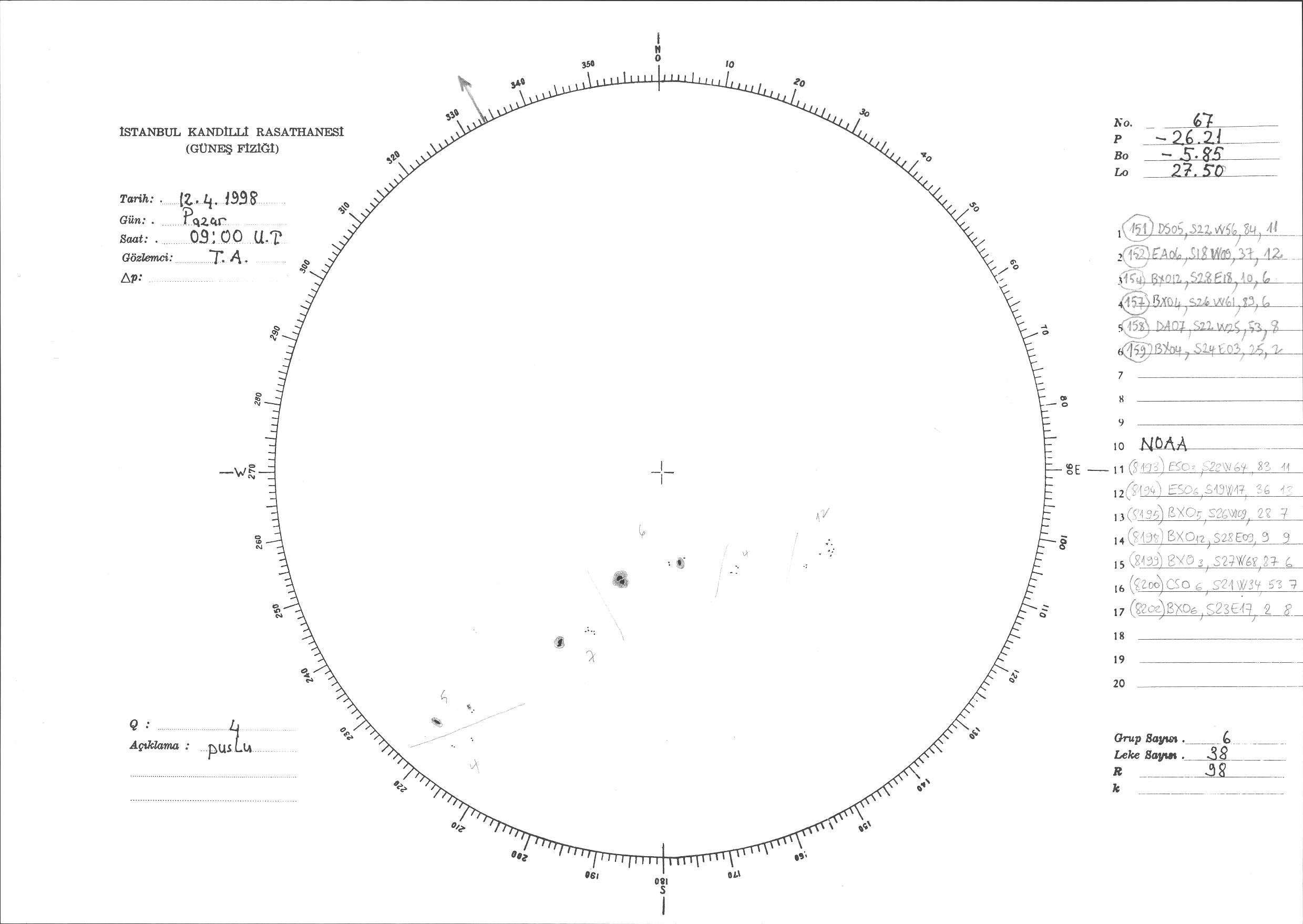 Güneş Lekesi Çizimi - 12.04.1998