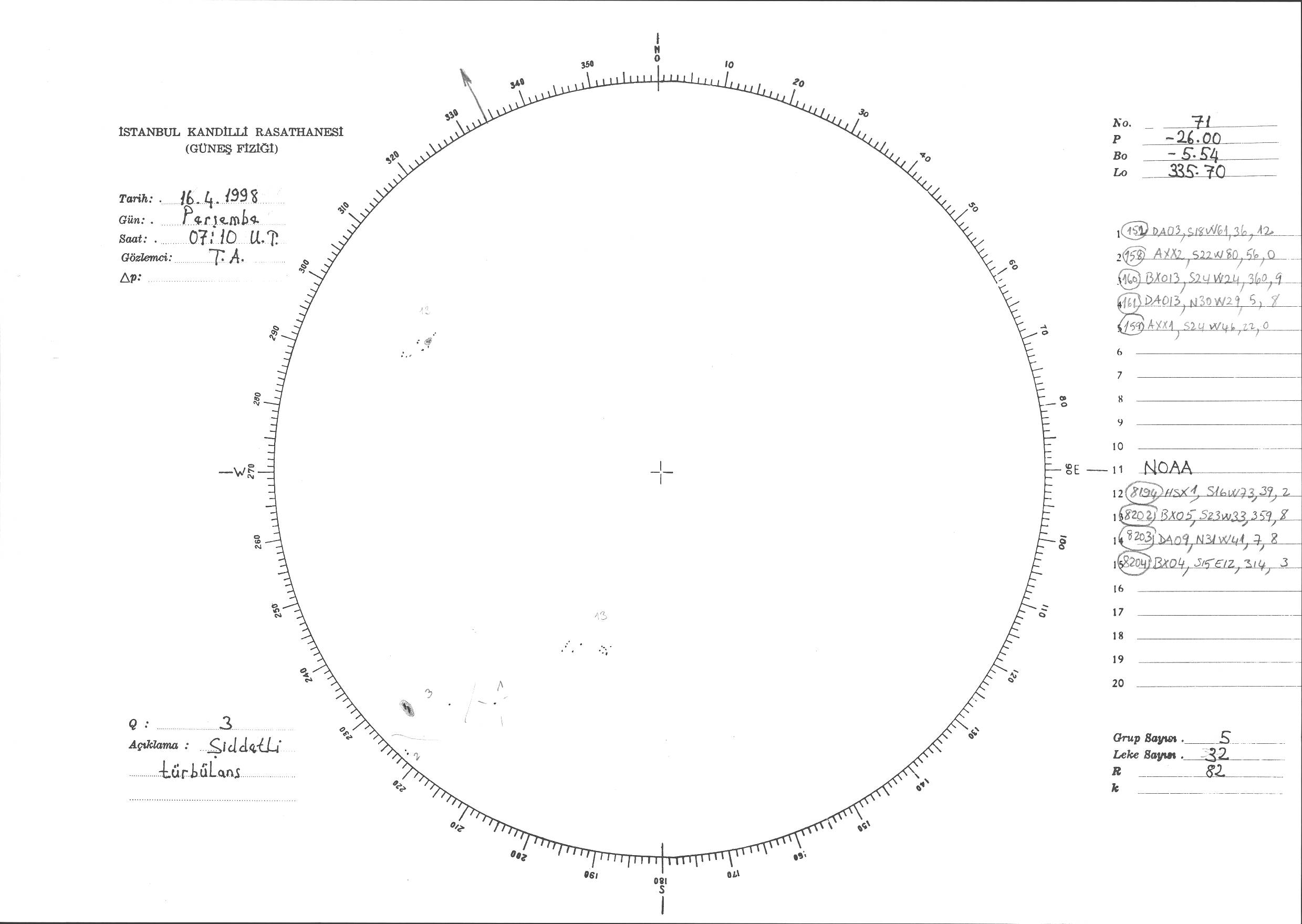Güneş Lekesi Çizimi - 16.04.1998
