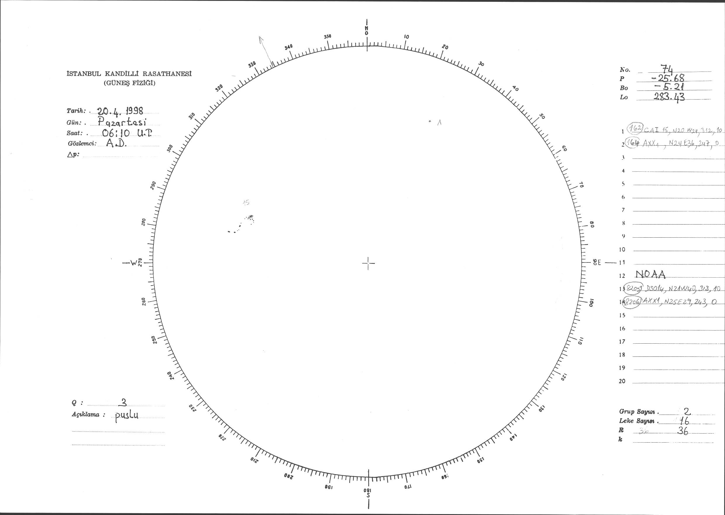 Güneş Lekesi Çizimi - 20.04.1998