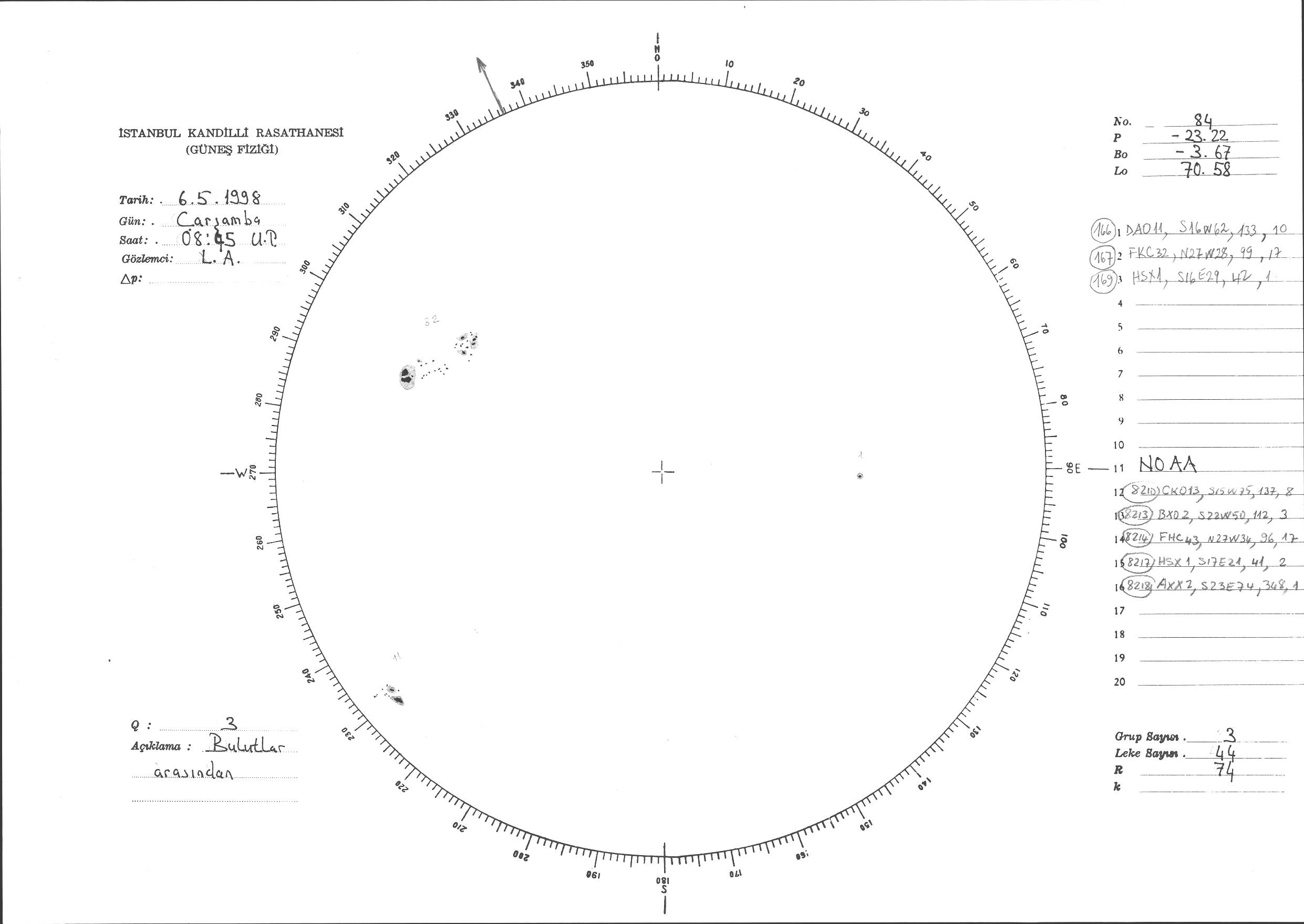 Güneş Lekesi Çizimi - 06.05.1998