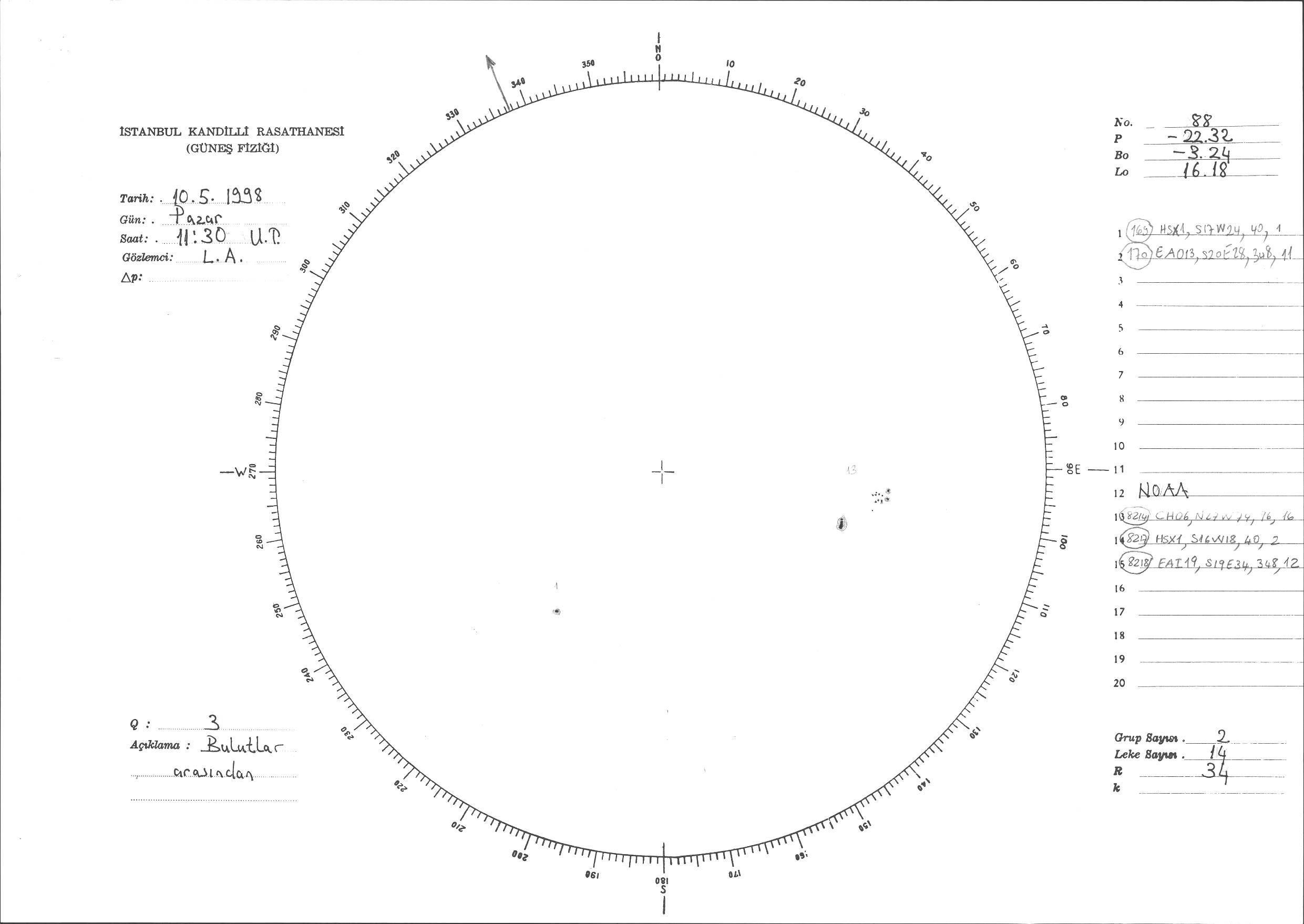 Güneş Lekesi Çizimi - 10.05.1998