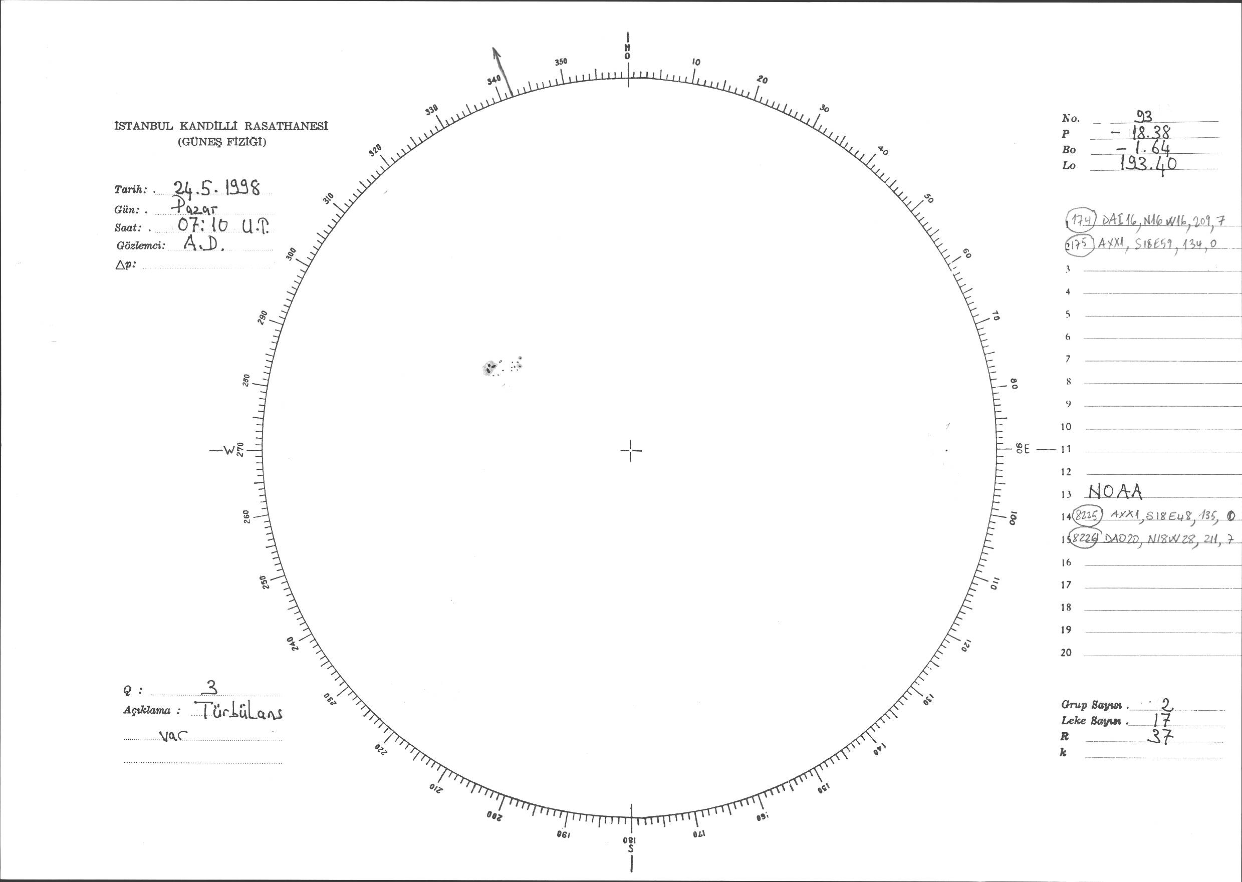 Güneş Lekesi Çizimi - 24.05.1998