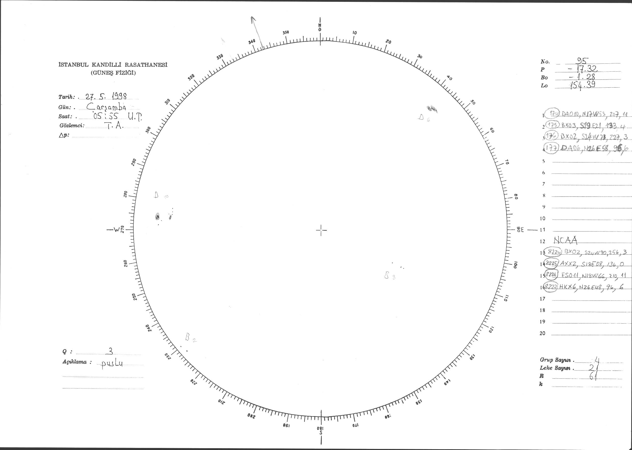 Güneş Lekesi Çizimi - 27.05.1998