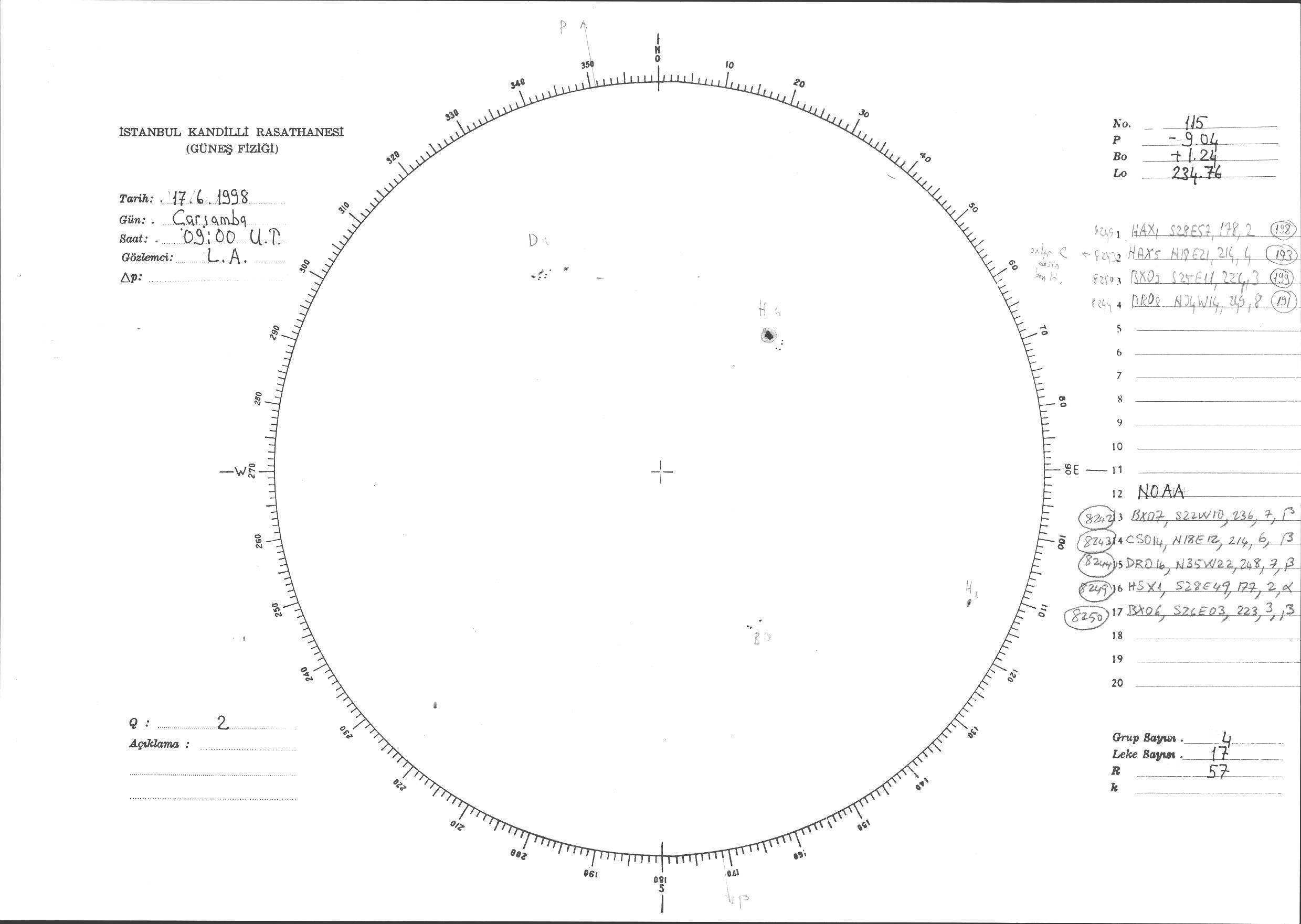 Güneş Lekesi Çizimi - 17.06.1998