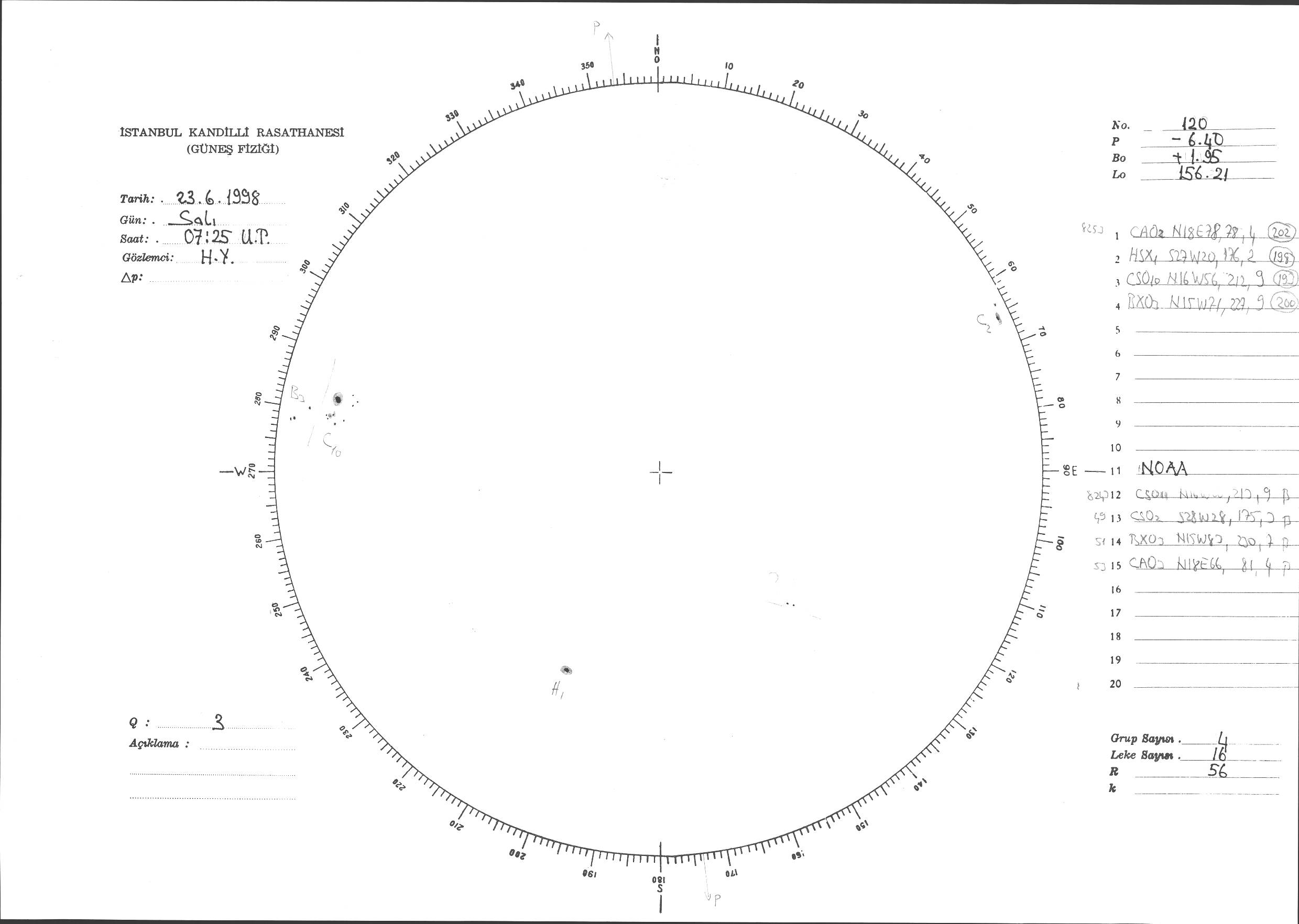 Güneş Lekesi Çizimi - 23.06.1998