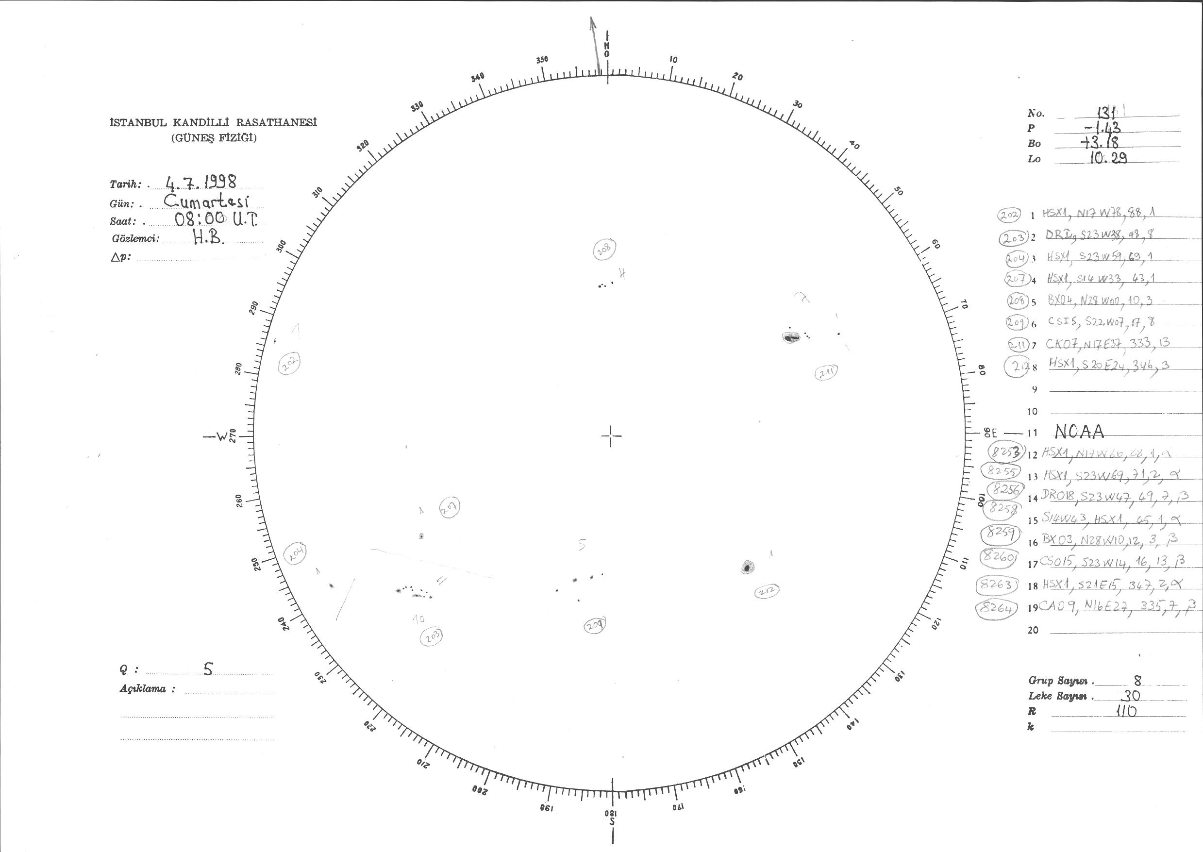 Güneş Lekesi Çizimi - 04.07.1998