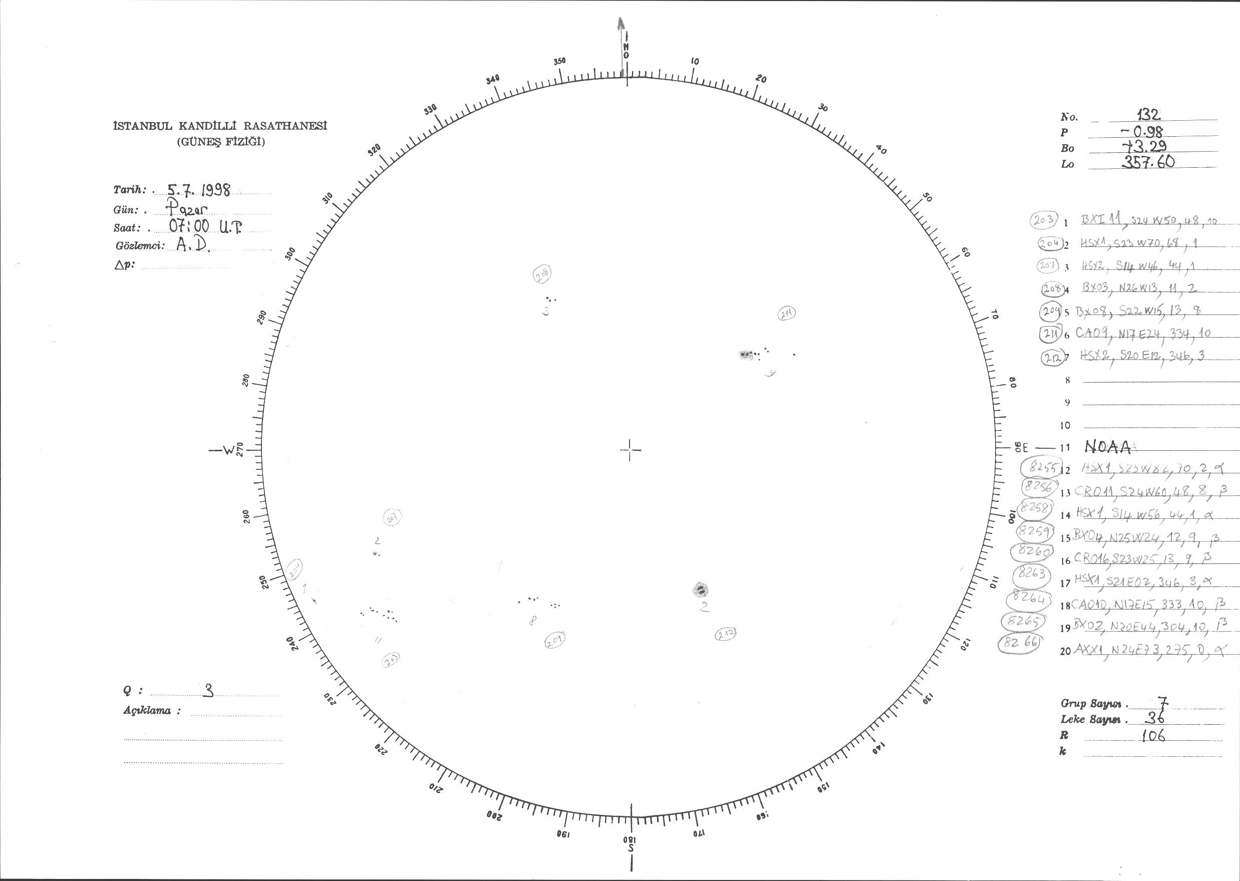 Güneş Lekesi Çizimi - 05.07.1998