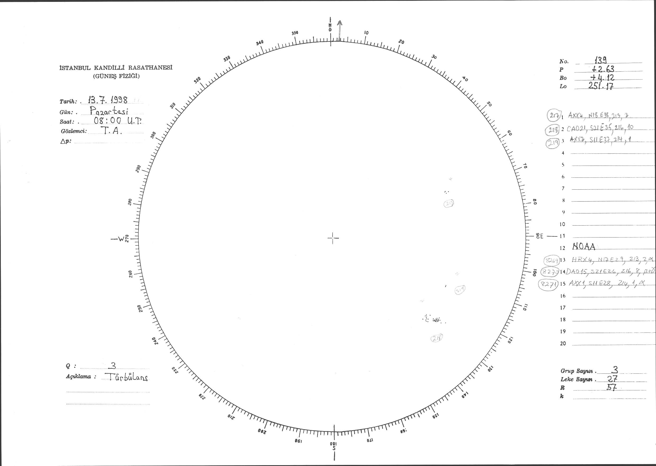 Güneş Lekesi Çizimi - 13.07.1998
