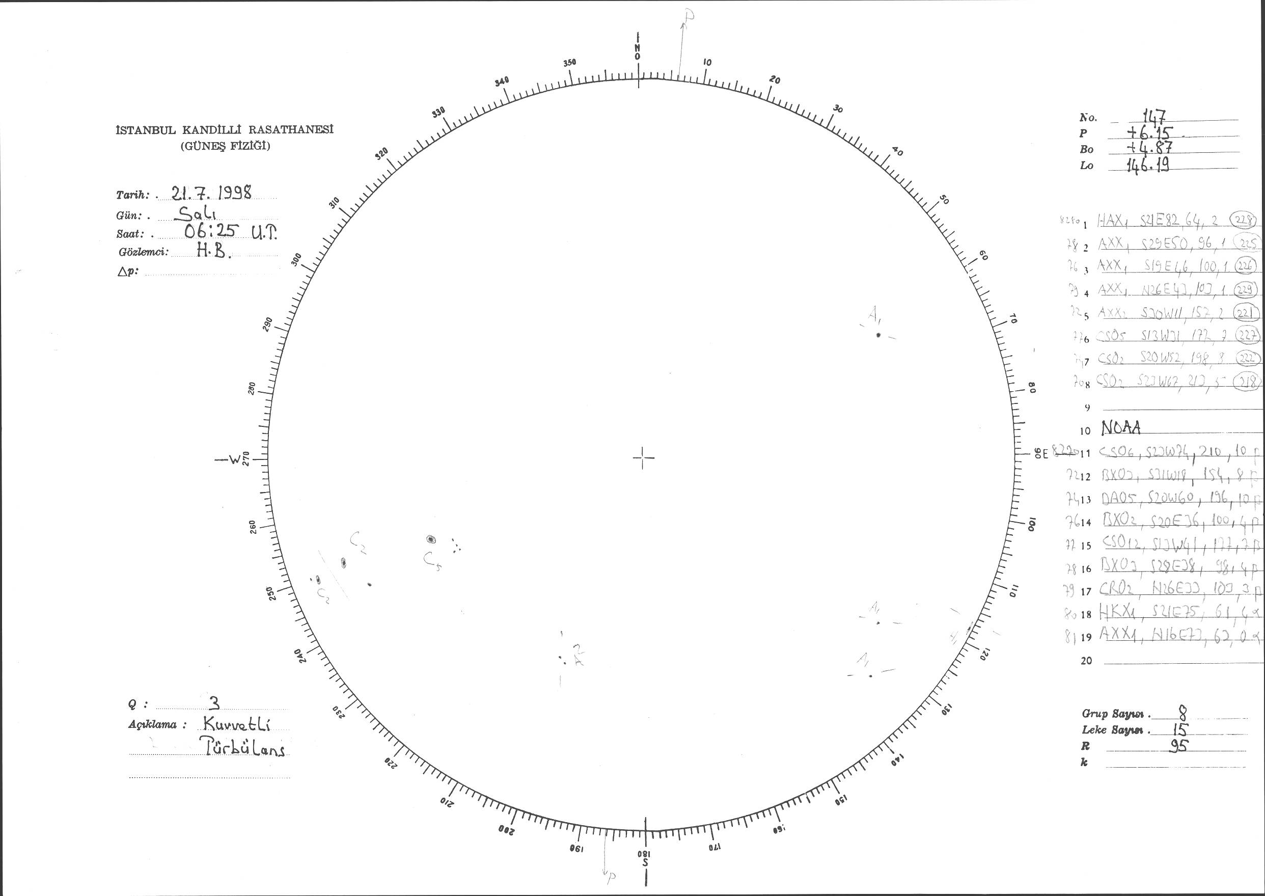 Güneş Lekesi Çizimi - 21.07.1998