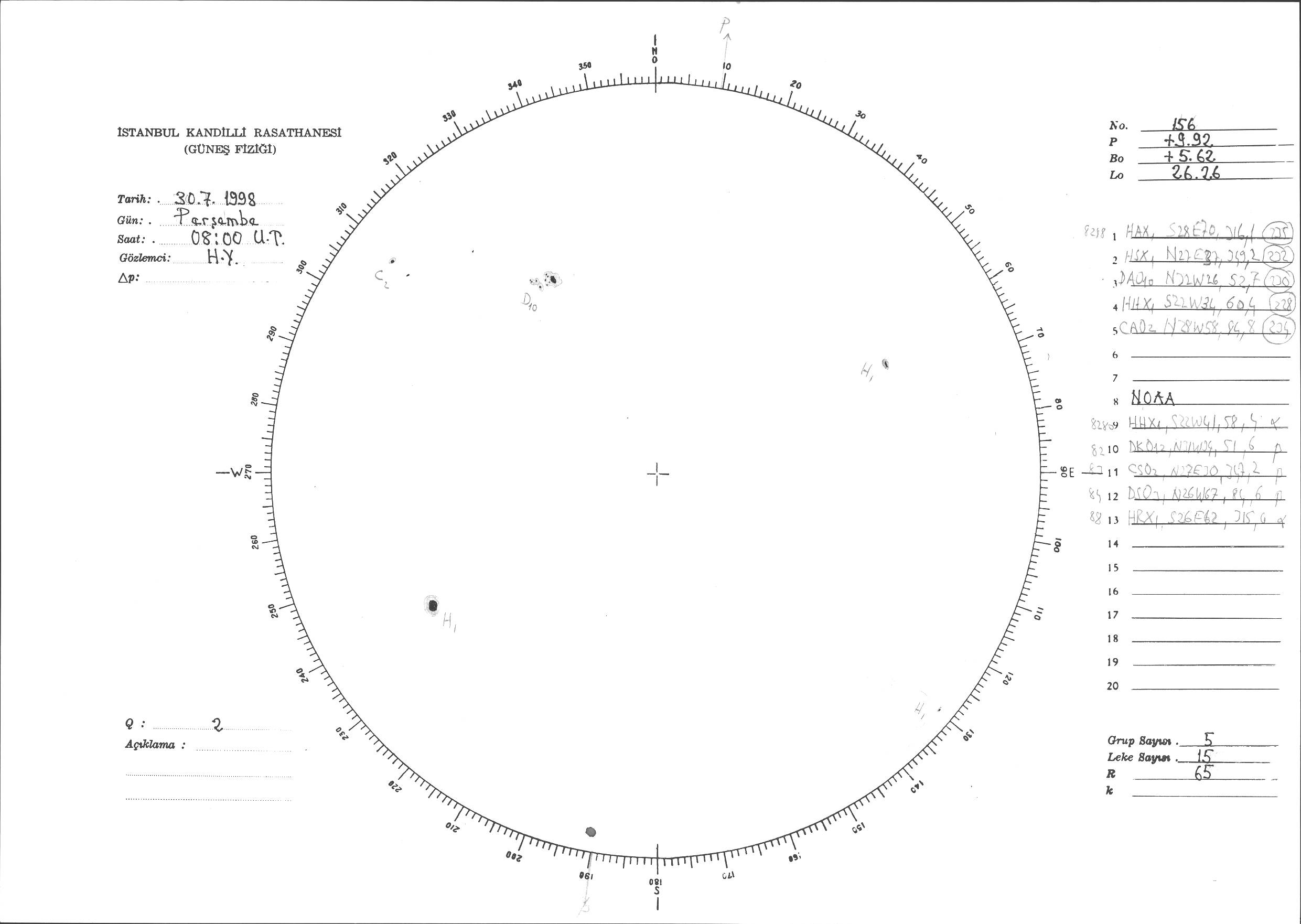 Güneş Lekesi Çizimi - 30.07.1998