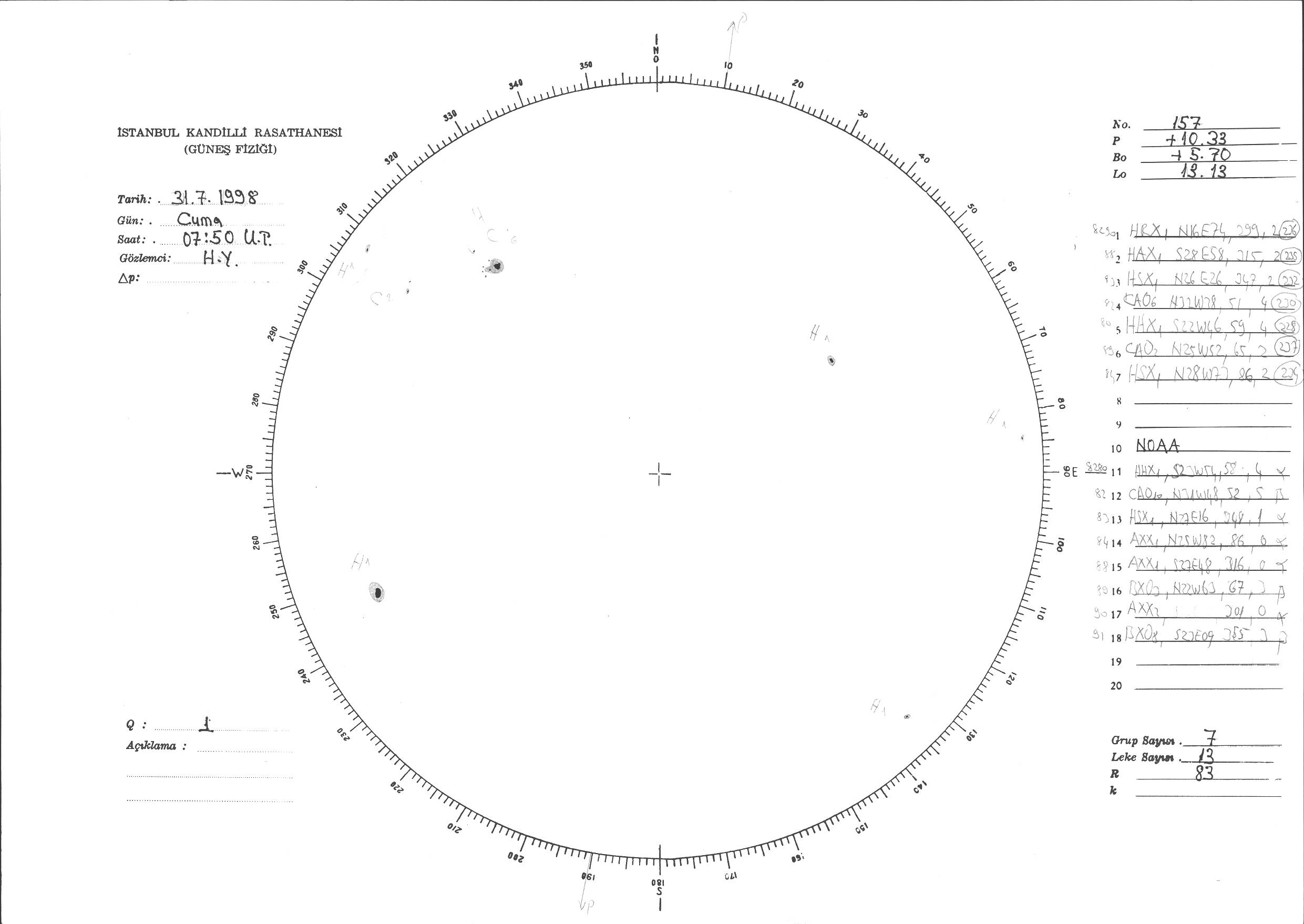 Güneş Lekesi Çizimi - 31.07.1998