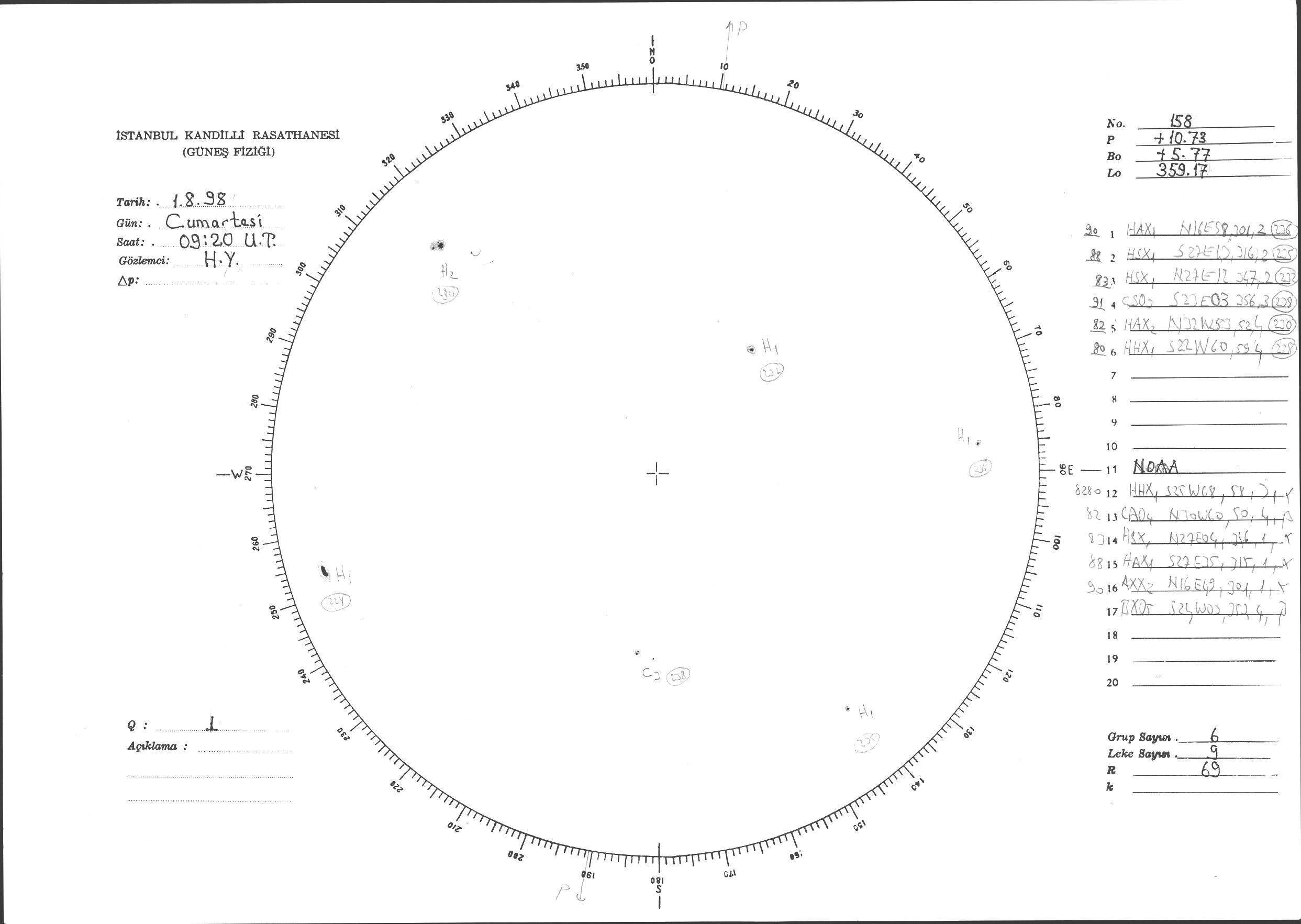 Güneş Lekesi Çizimi - 01.08.1998