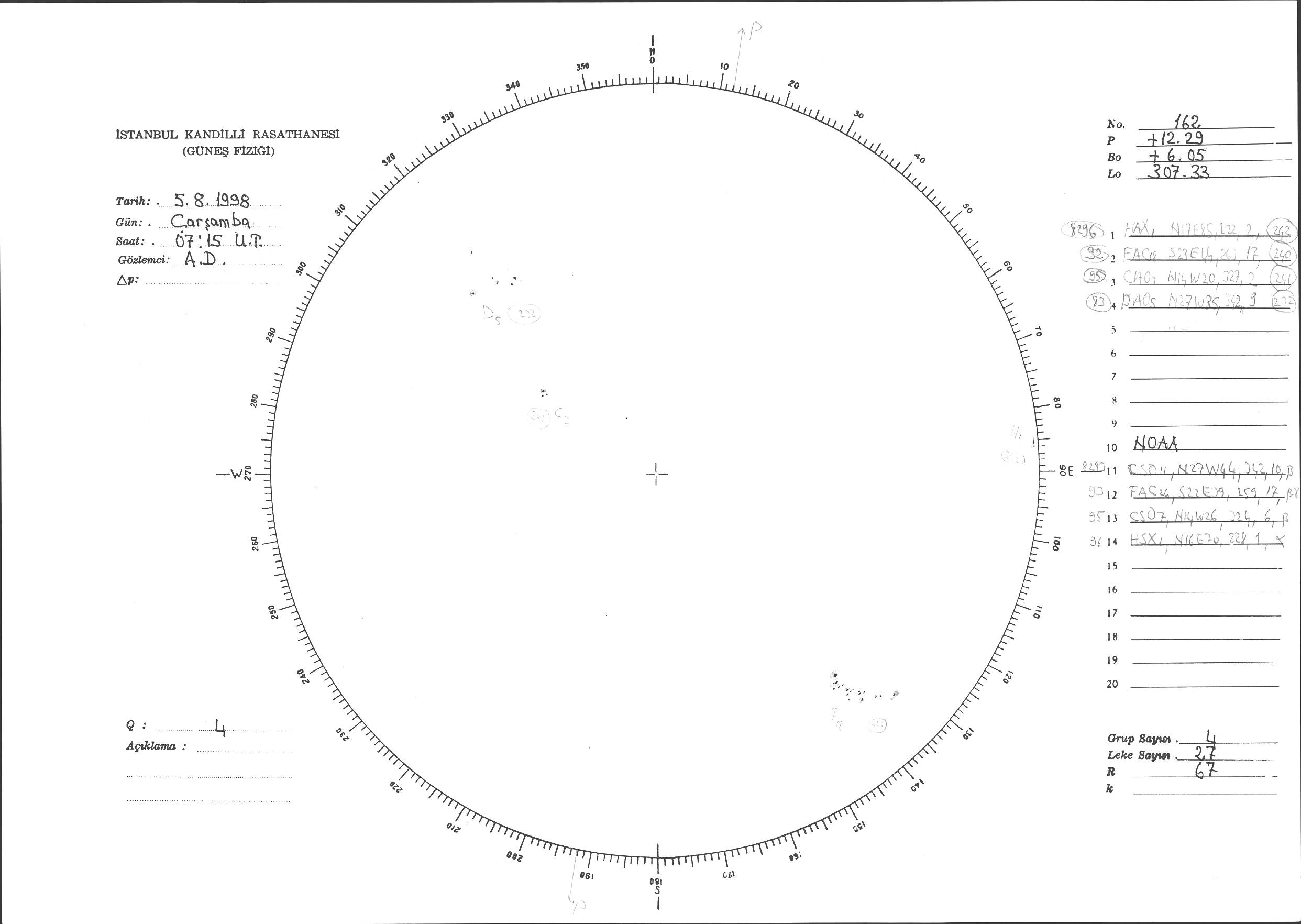 Güneş Lekesi Çizimi - 05.08.1998