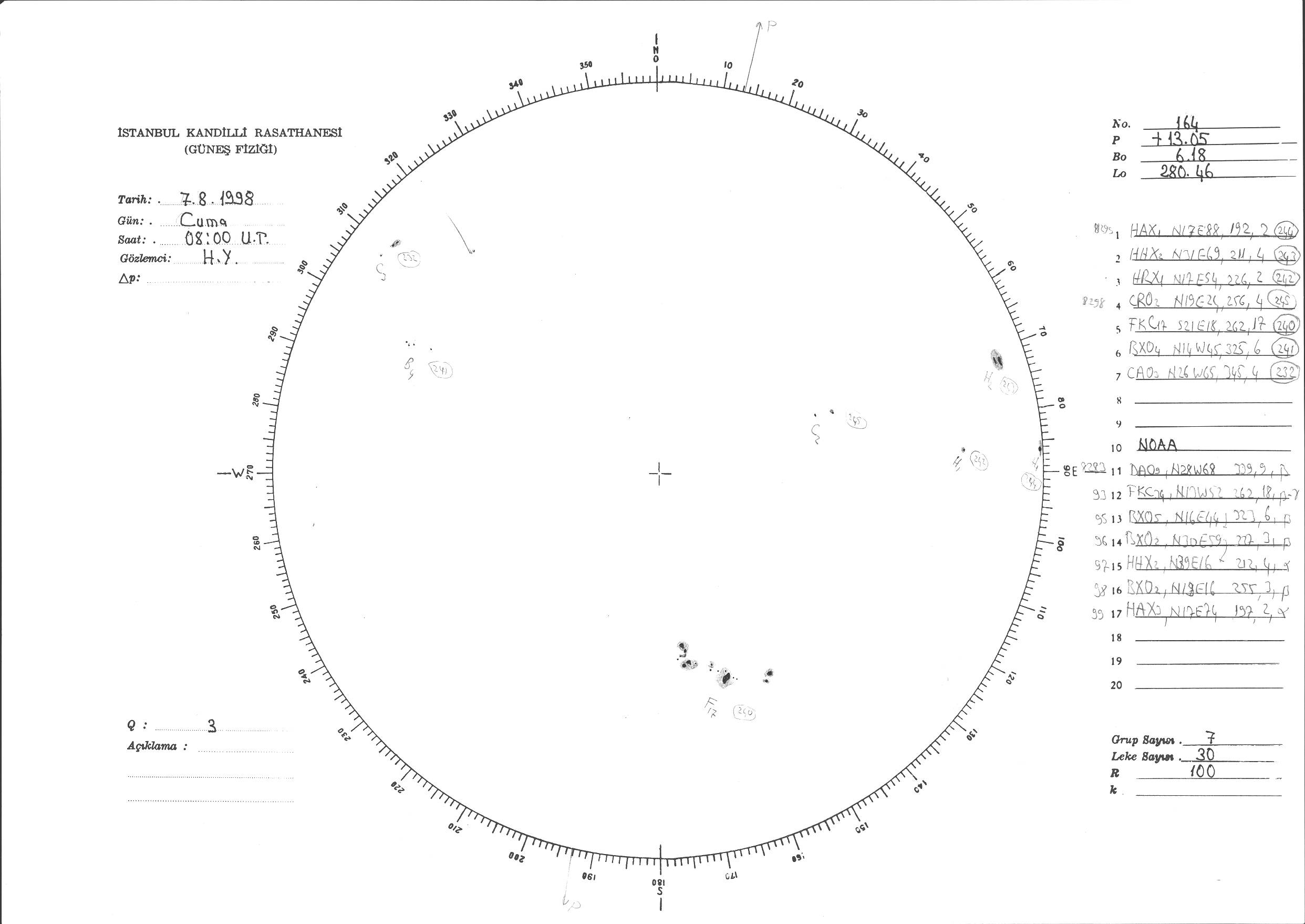 Güneş Lekesi Çizimi - 07.08.1998