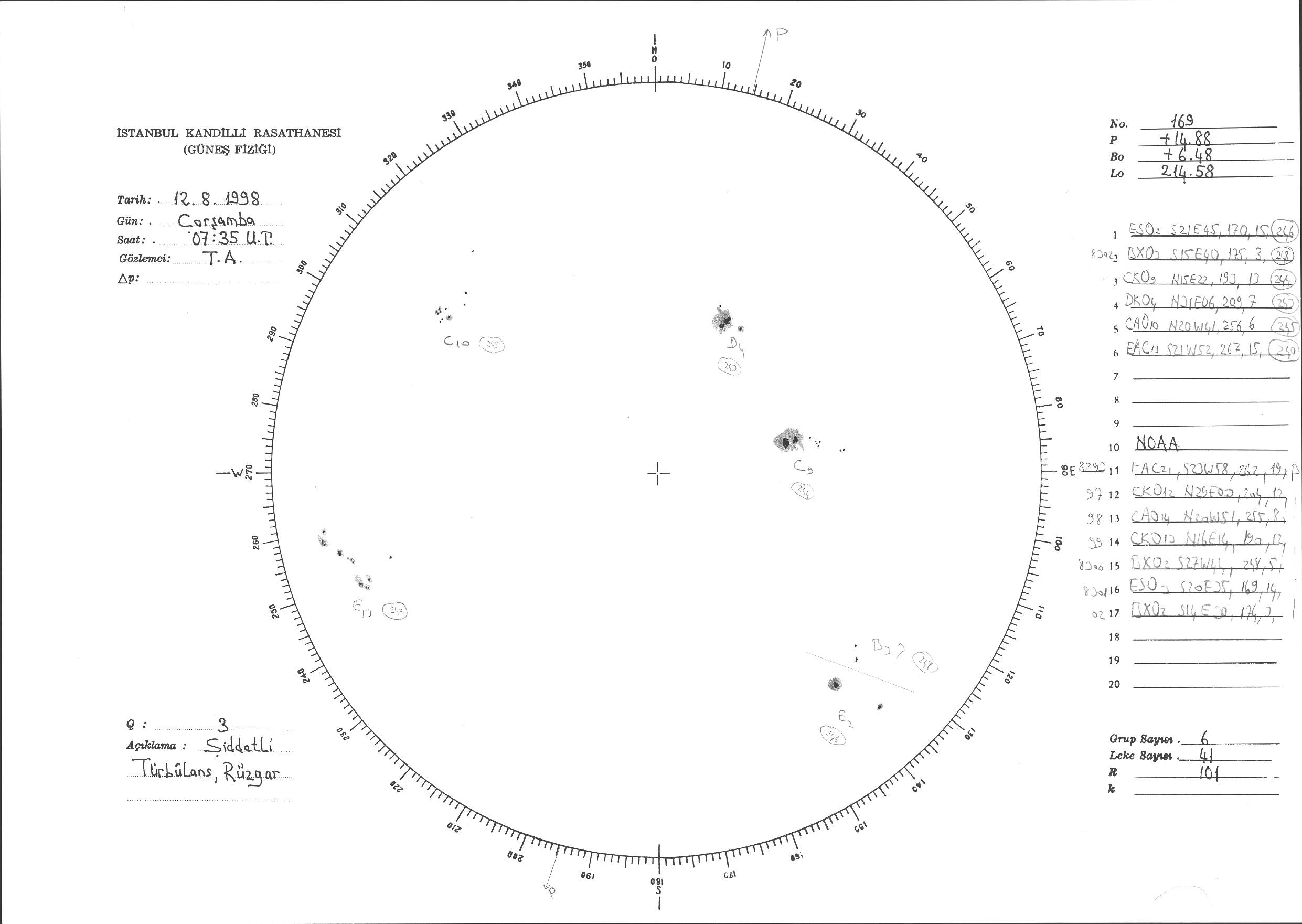 Güneş Lekesi Çizimi - 12.08.1998
