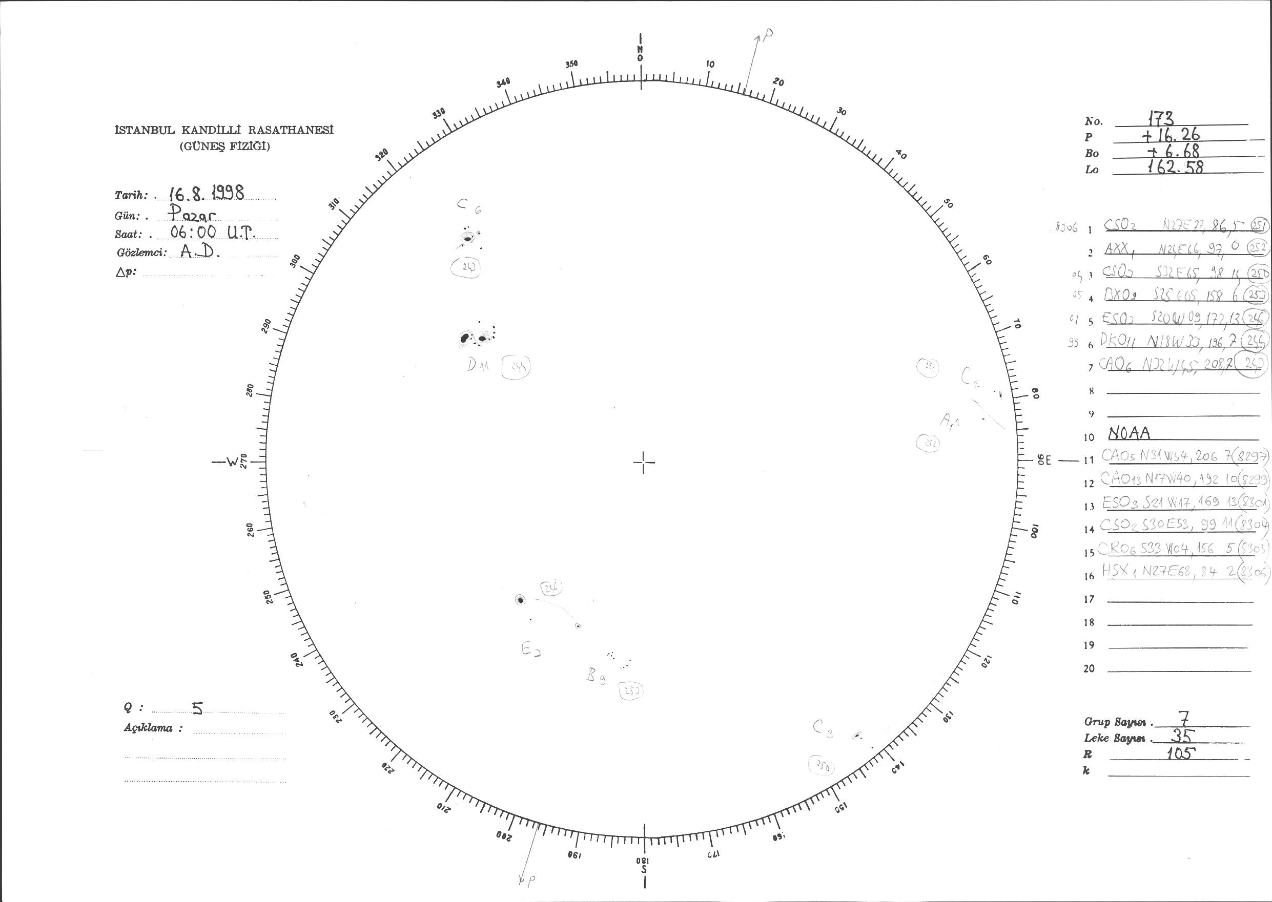 Güneş Lekesi Çizimi - 16.08.1998