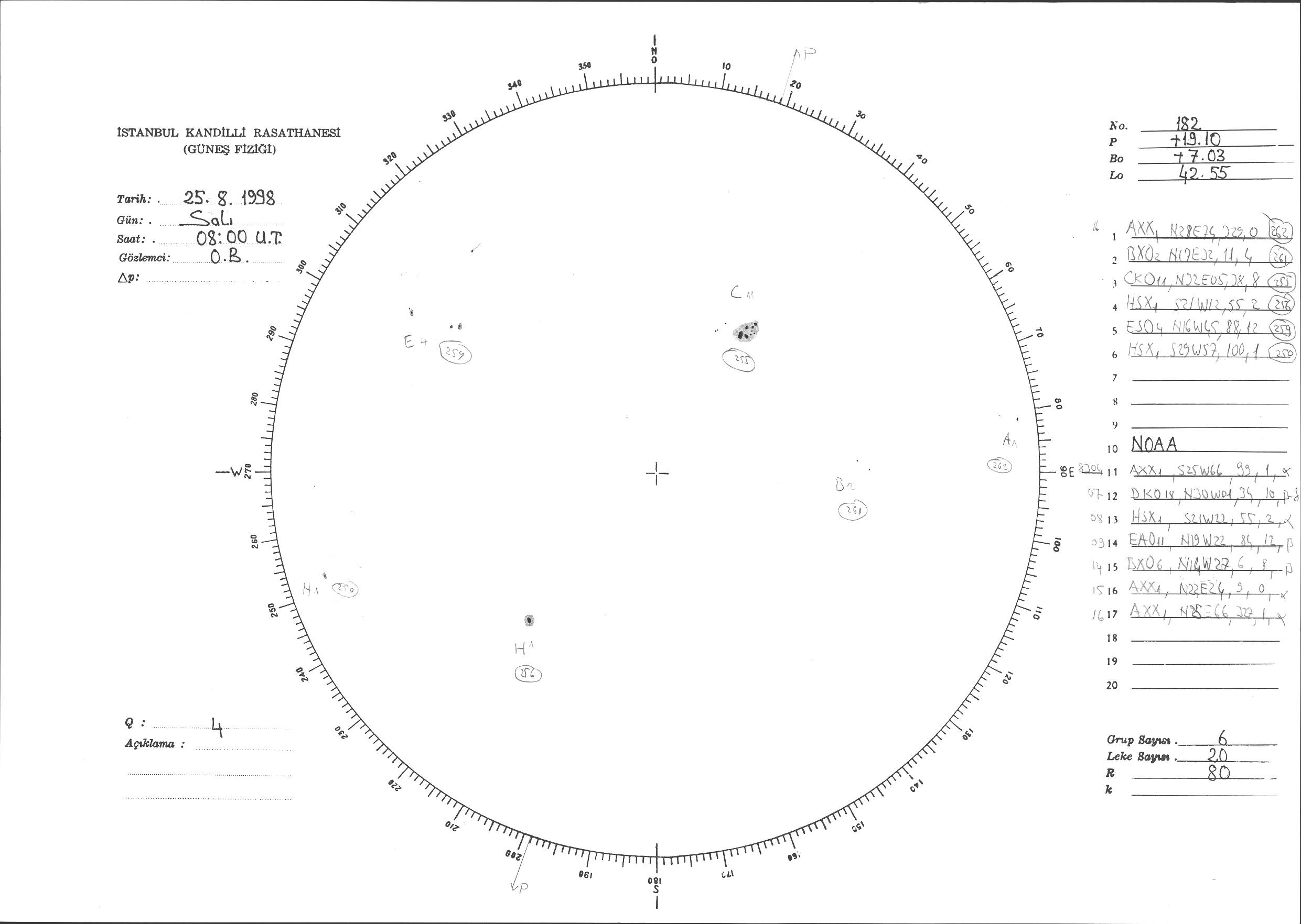 Güneş Lekesi Çizimi - 25.08.1998