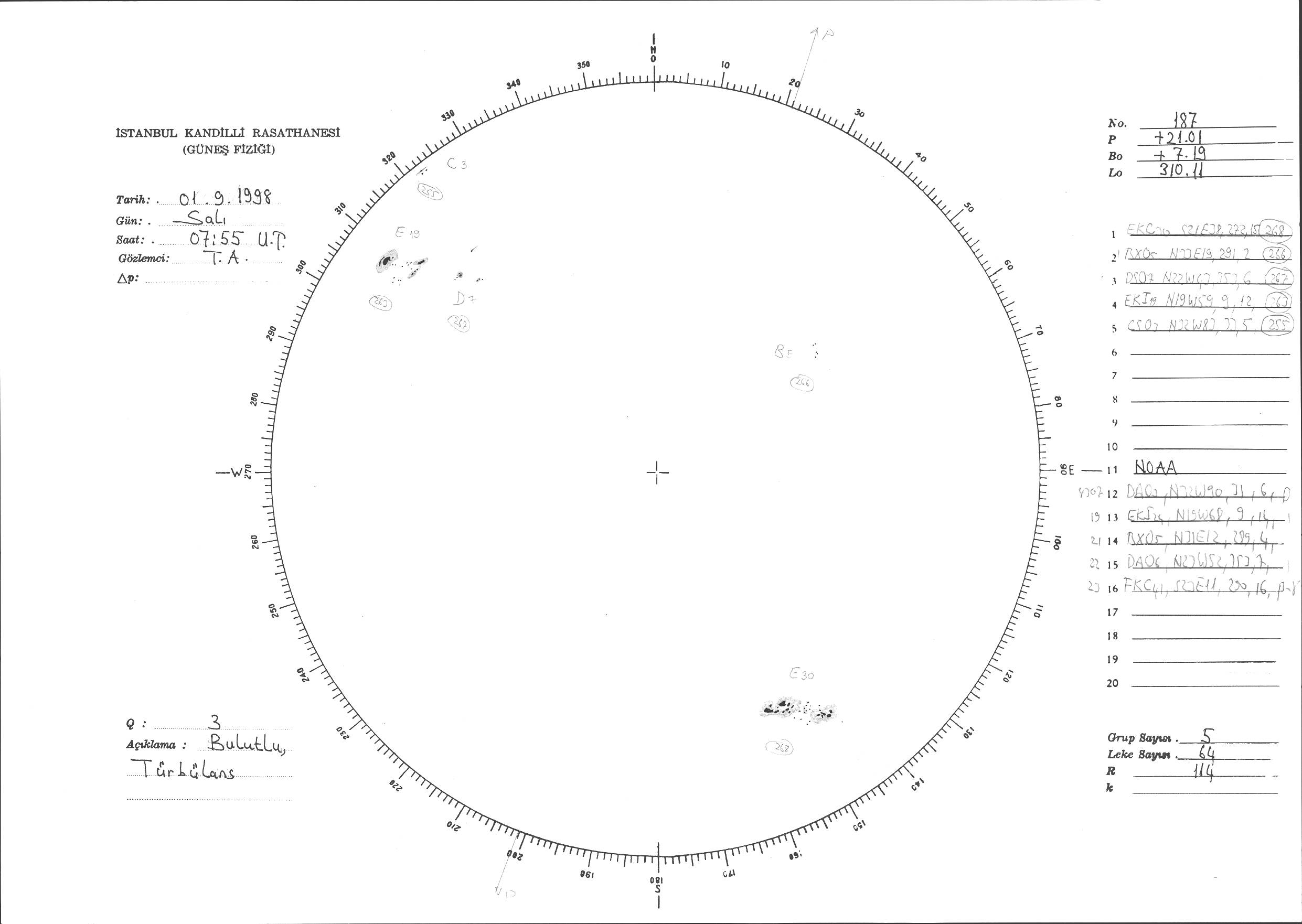 Güneş Lekesi Çizimi - 01.09.1998