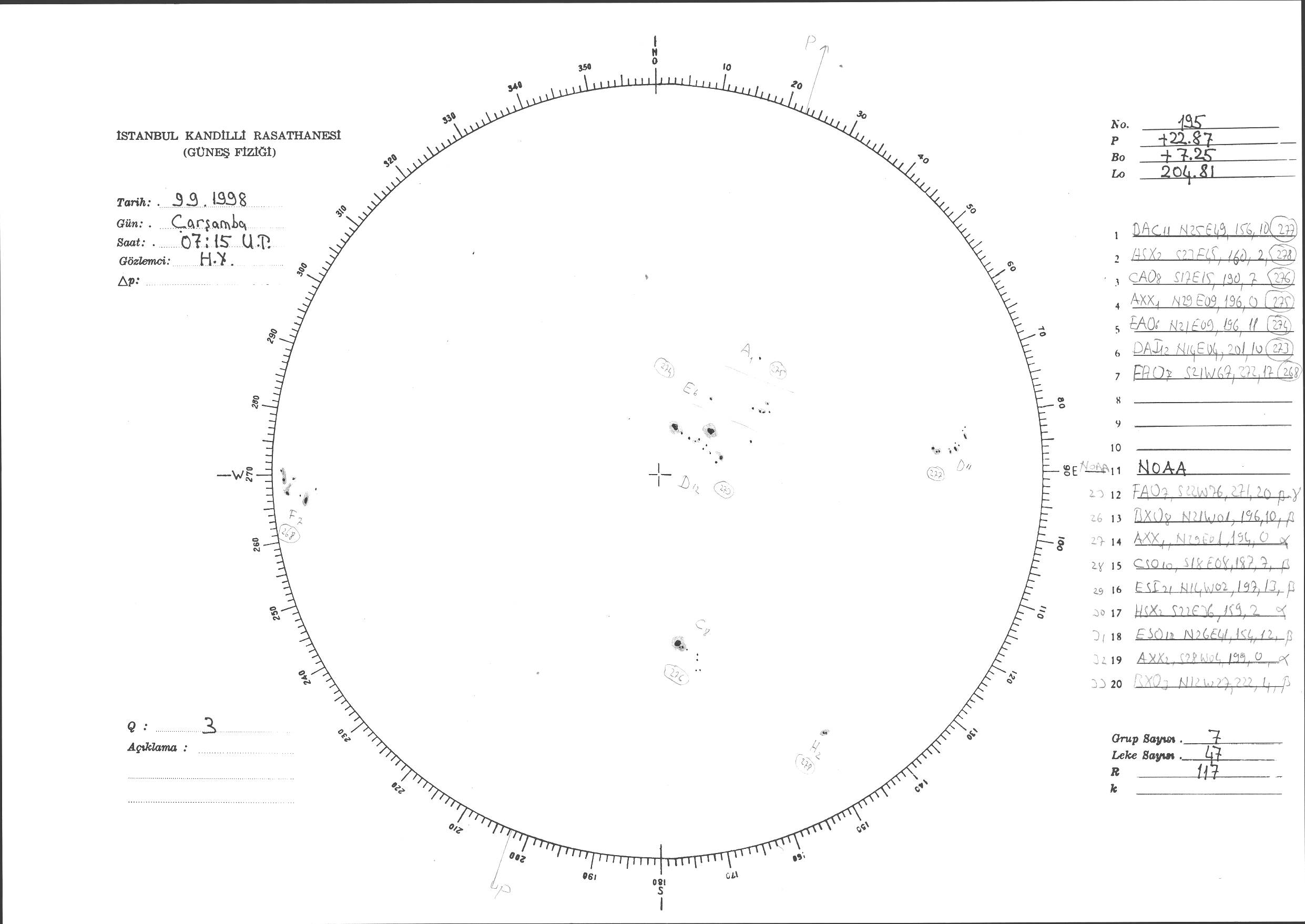Güneş Lekesi Çizimi - 09.09.1998