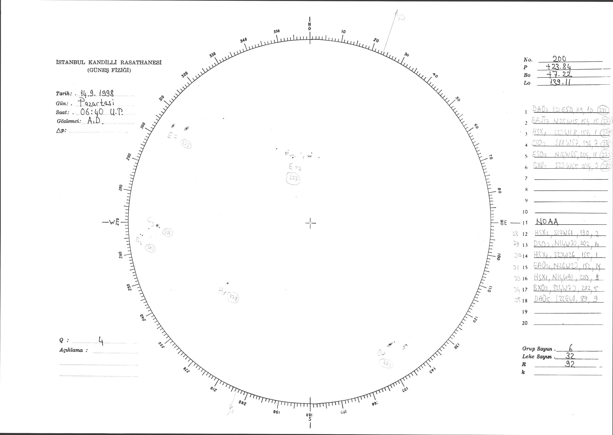 Güneş Lekesi Çizimi - 14.09.1998