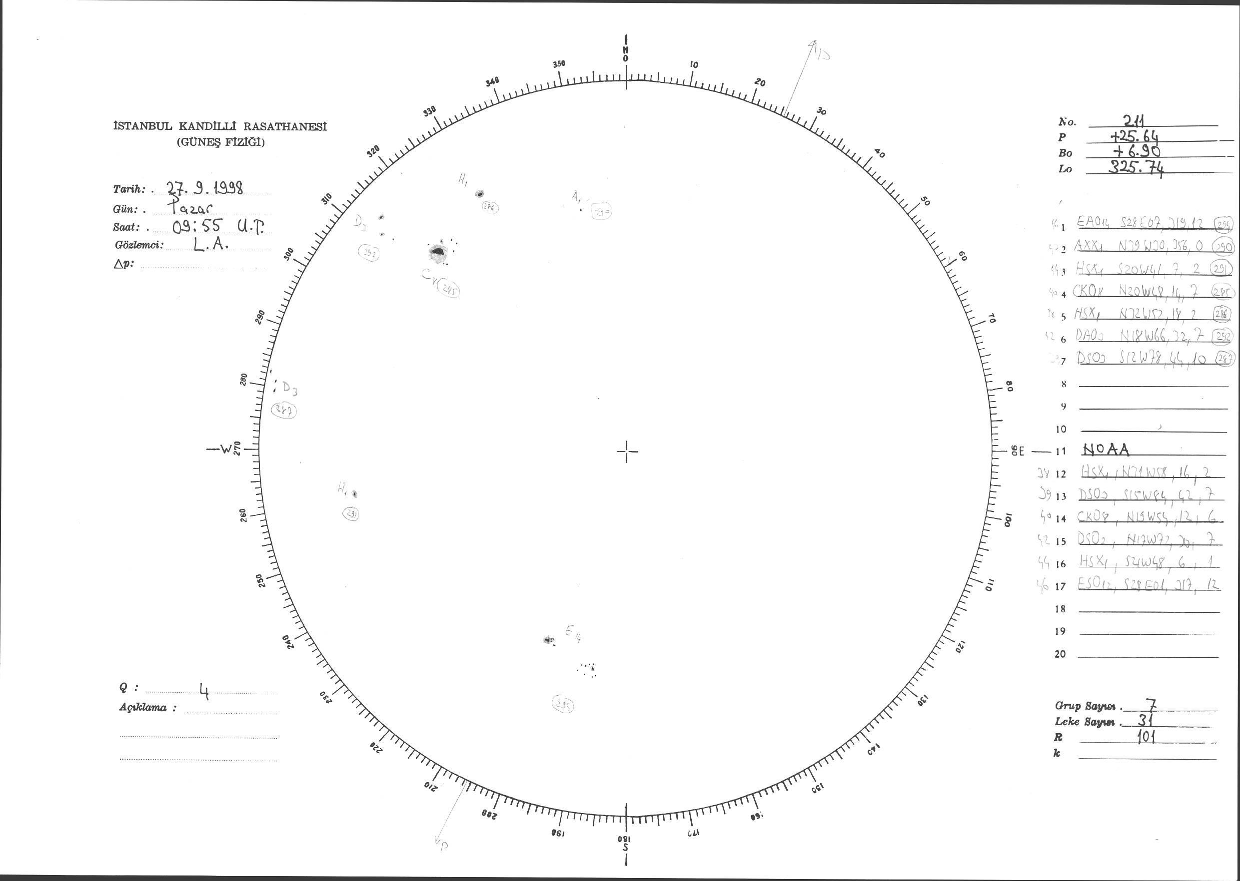 Güneş Lekesi Çizimi - 27.09.1998