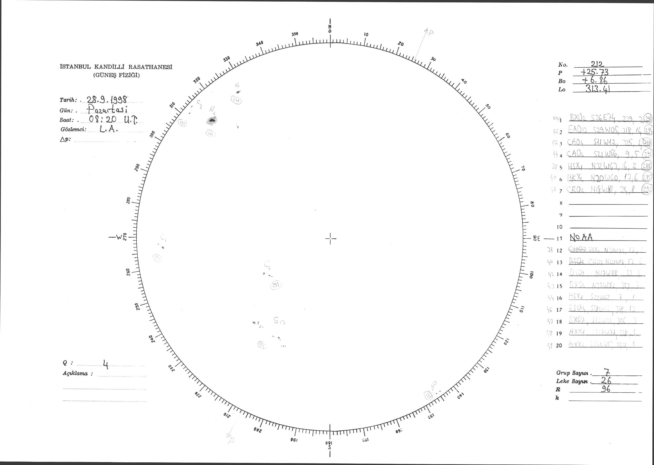 Güneş Lekesi Çizimi - 28.09.1998