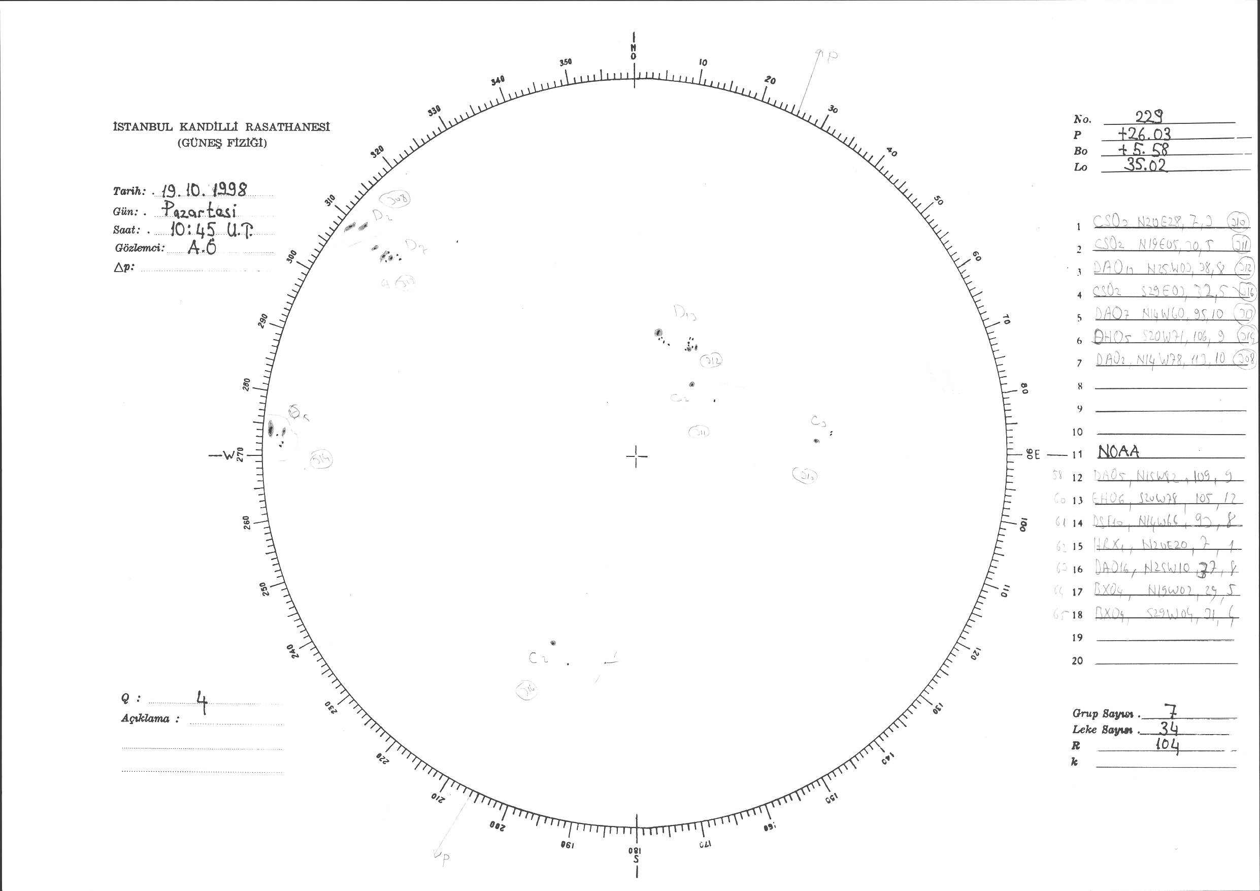 Güneş Lekesi Çizimi - 19.10.1998