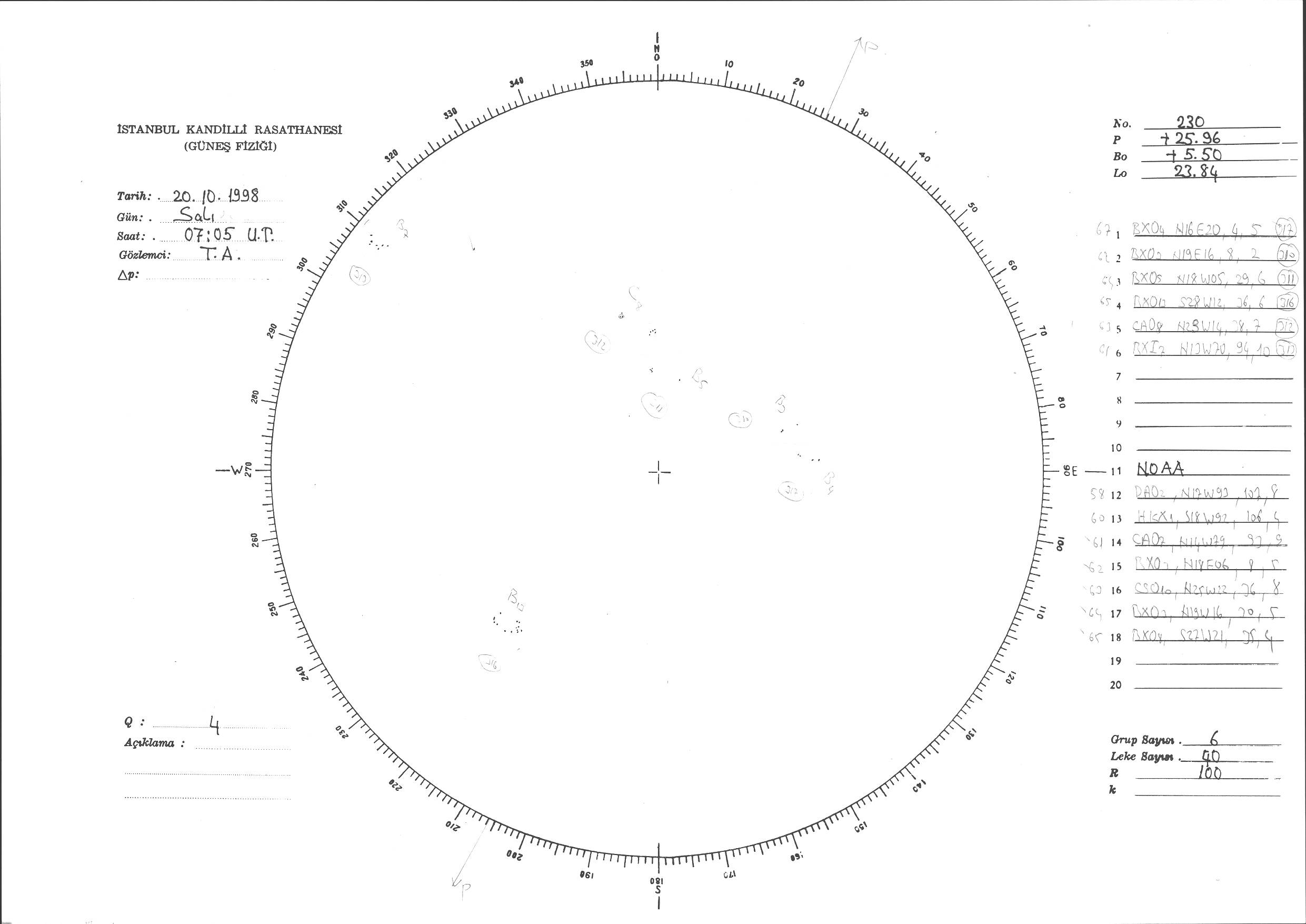 Güneş Lekesi Çizimi - 20.10.1998