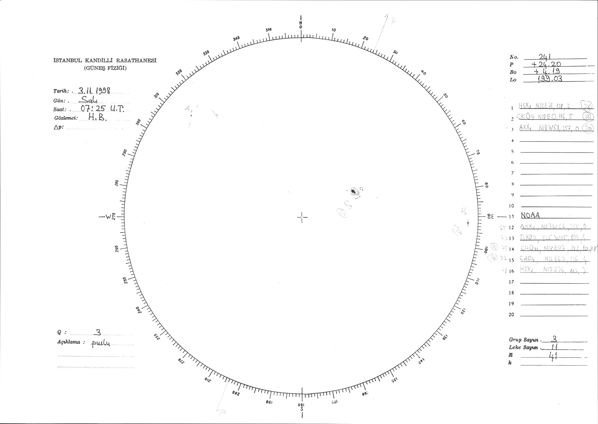 Güneş Lekesi Çizimi - 03.11.1998