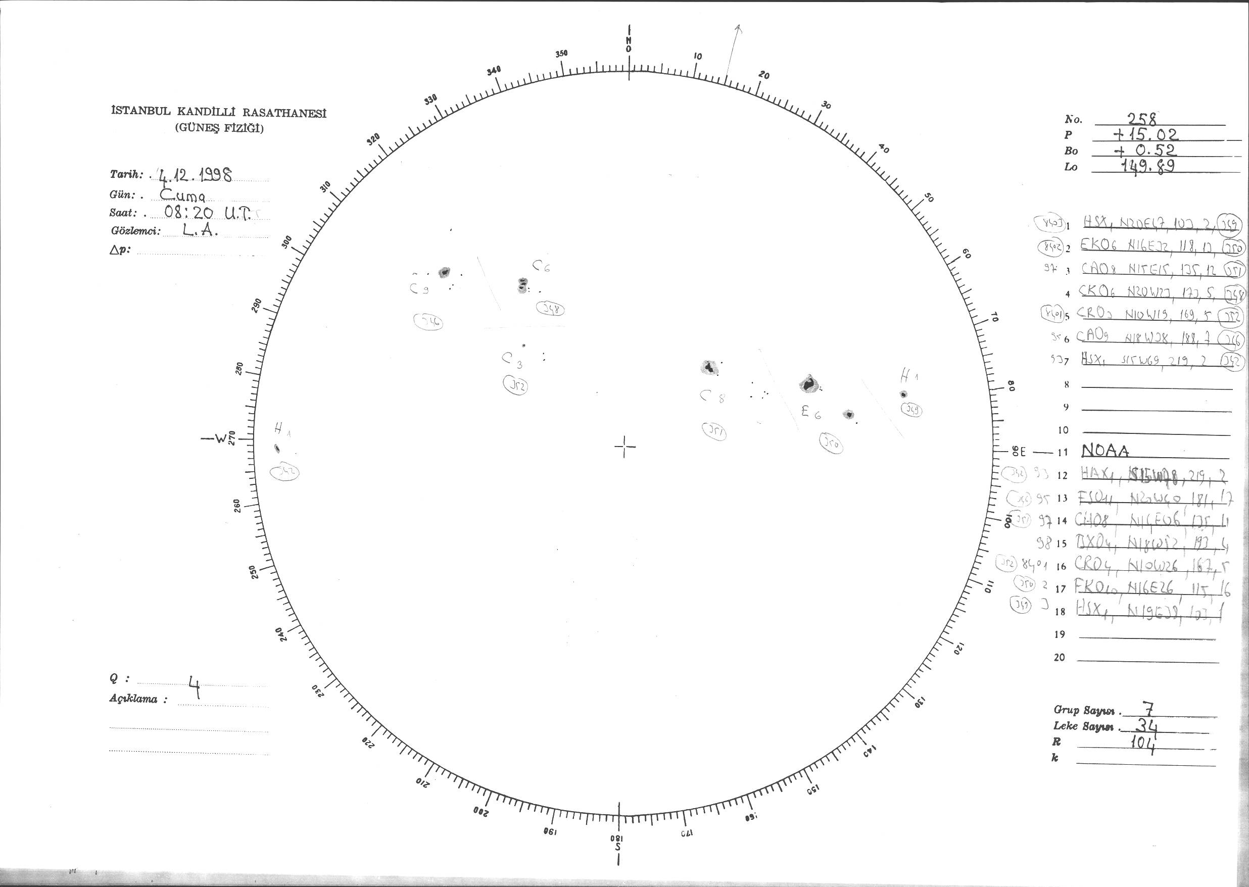 Güneş Lekesi Çizimi - 04.12.1998